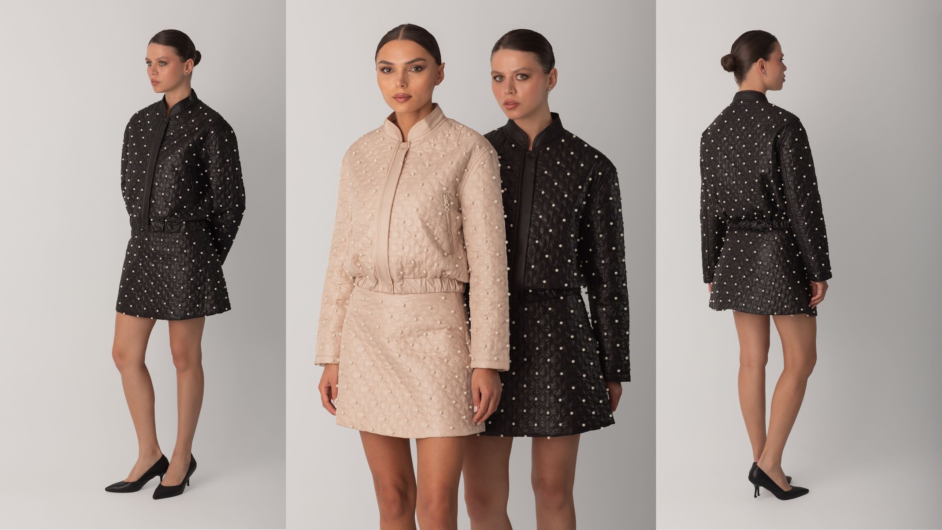 QUILTED ANTHRACITE JACKET WITH PEARLS
