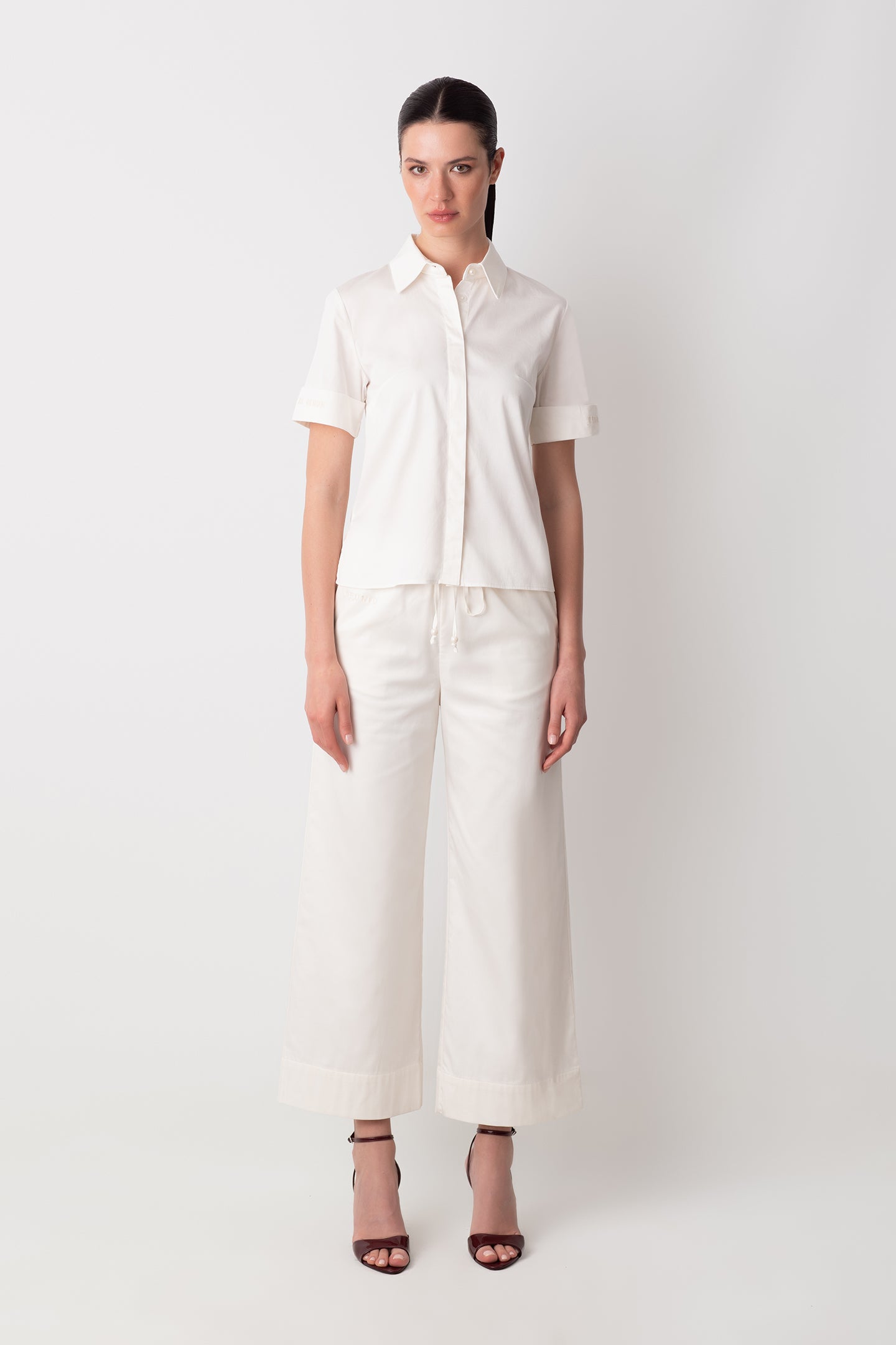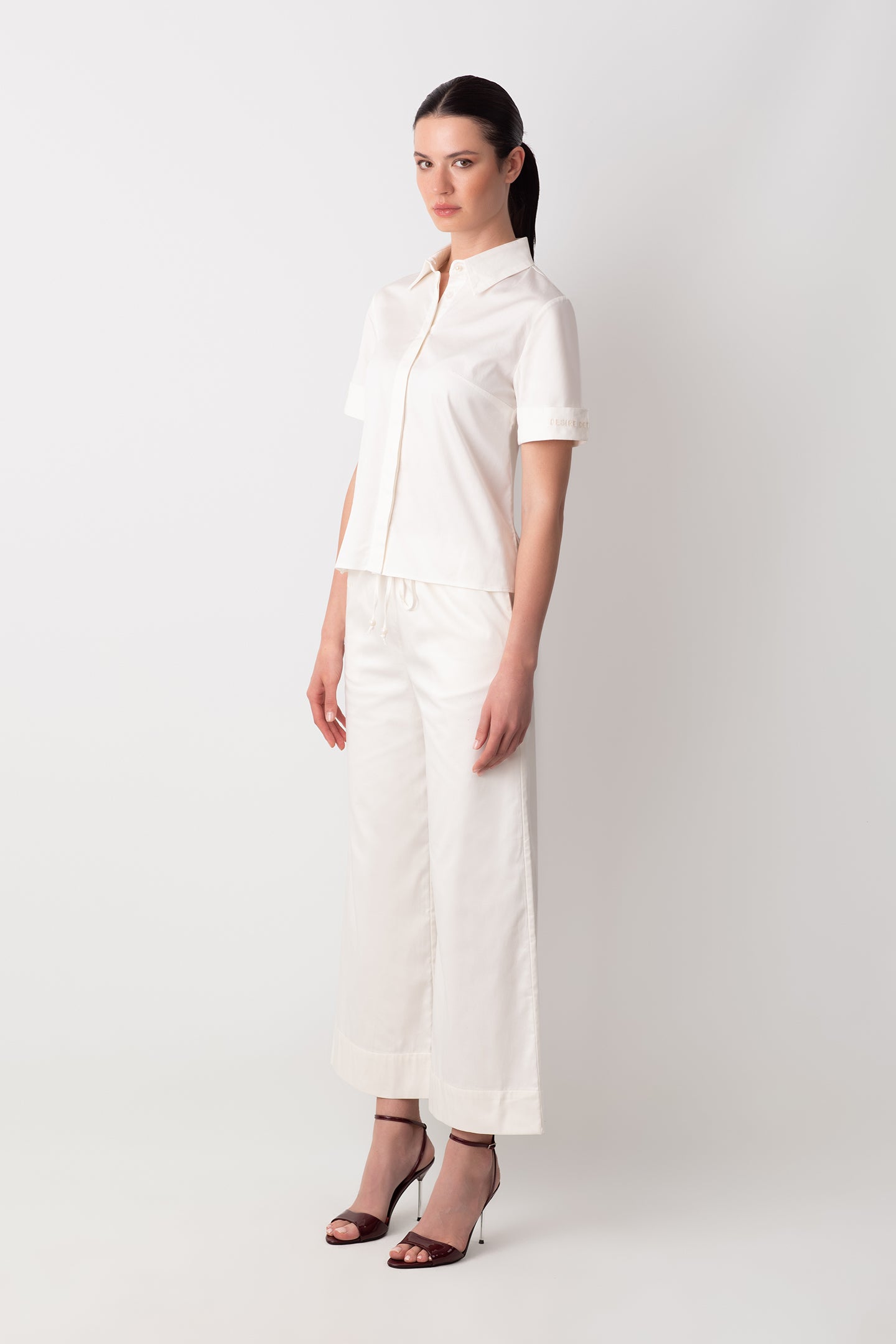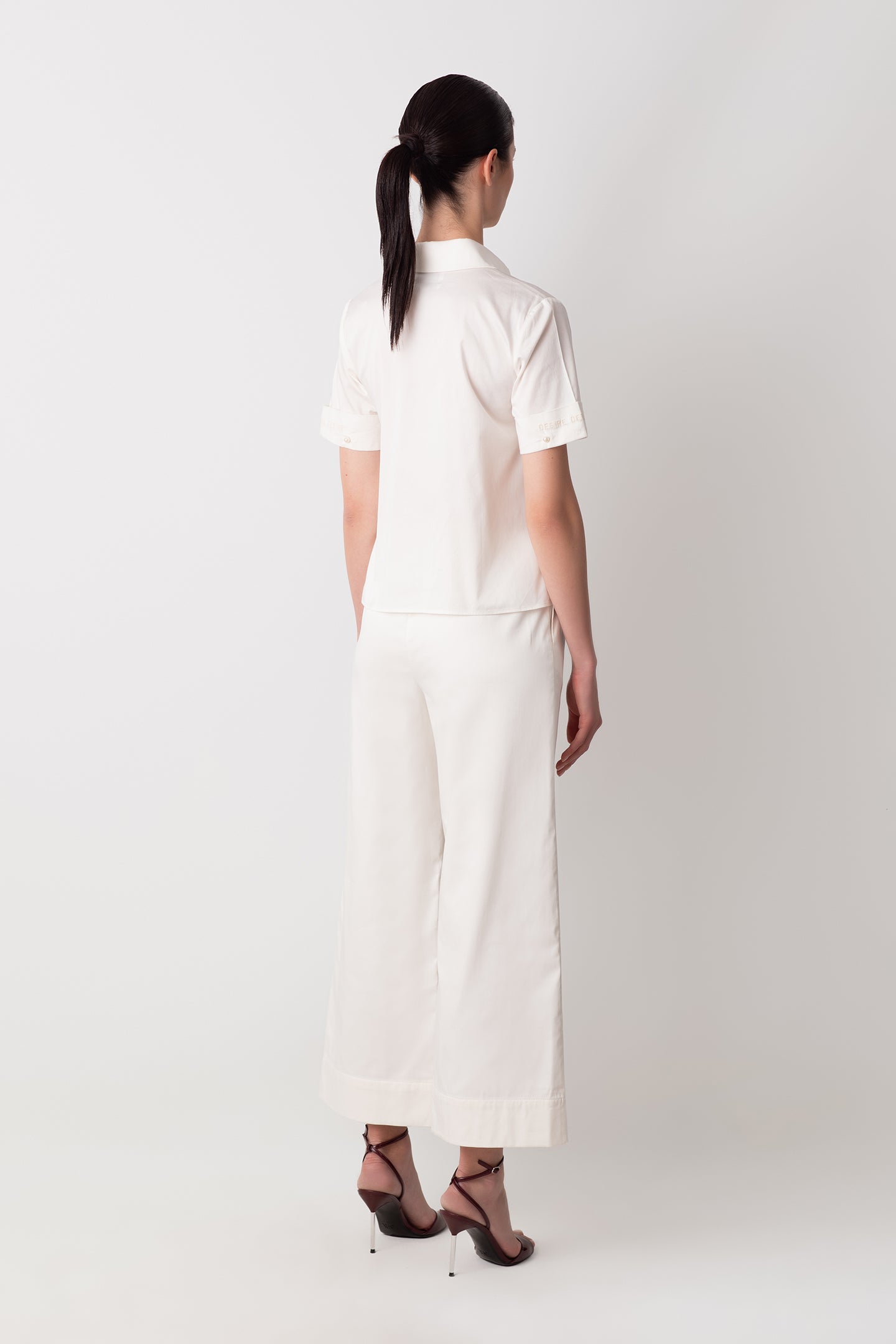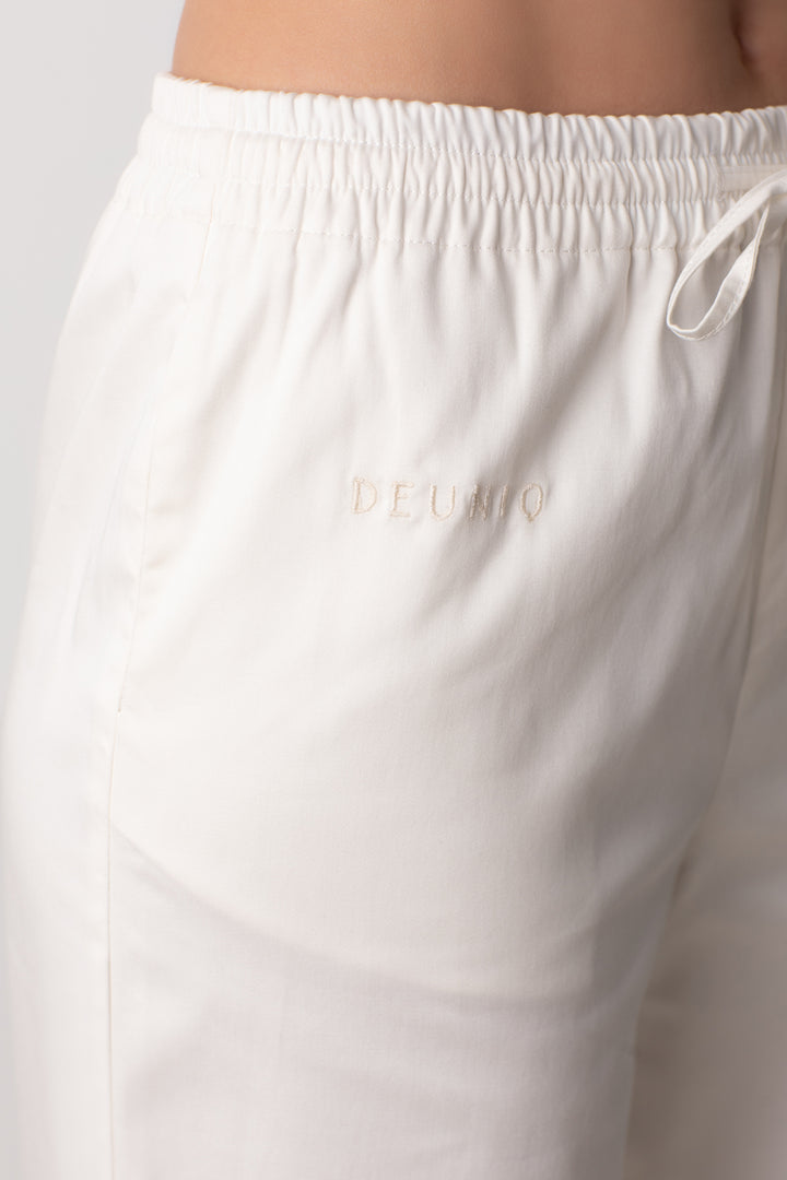 BROUDED POPLIN WHITE LEG LOOSE PANTS