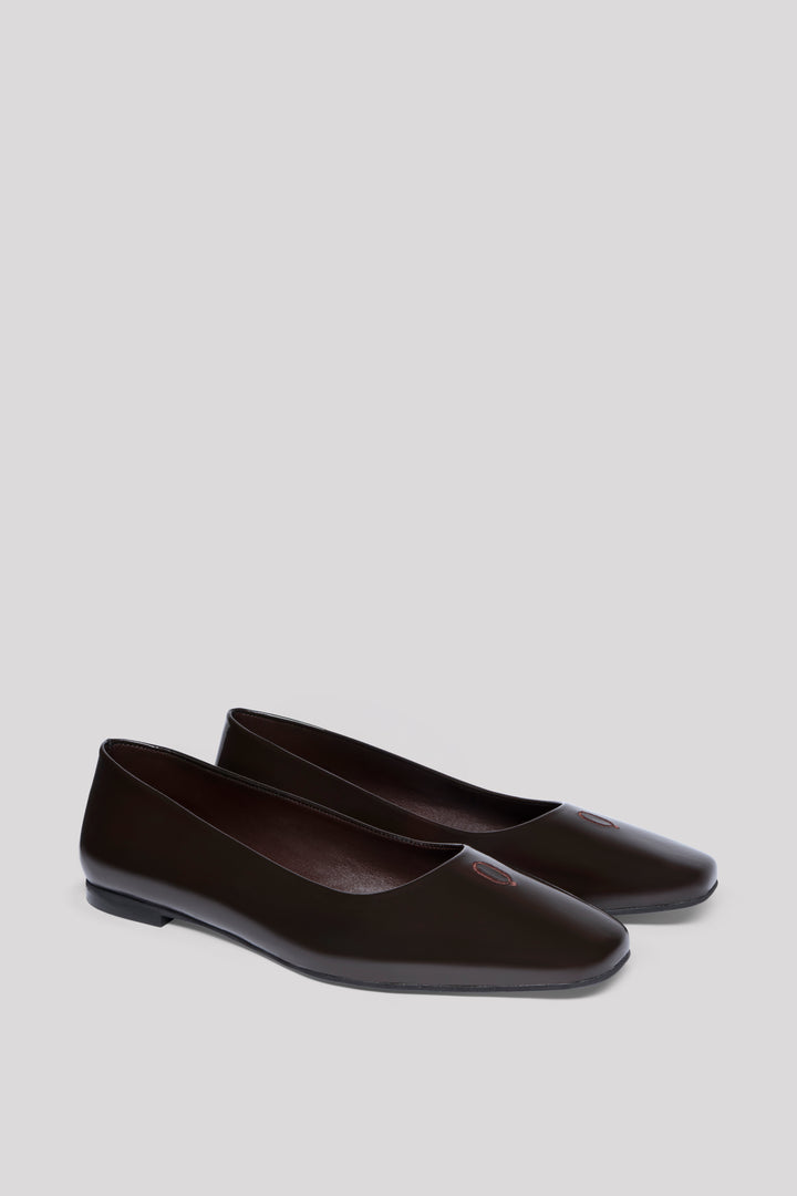 CHOCOLATE BROWN SQUARE TOE BALLET FLATS