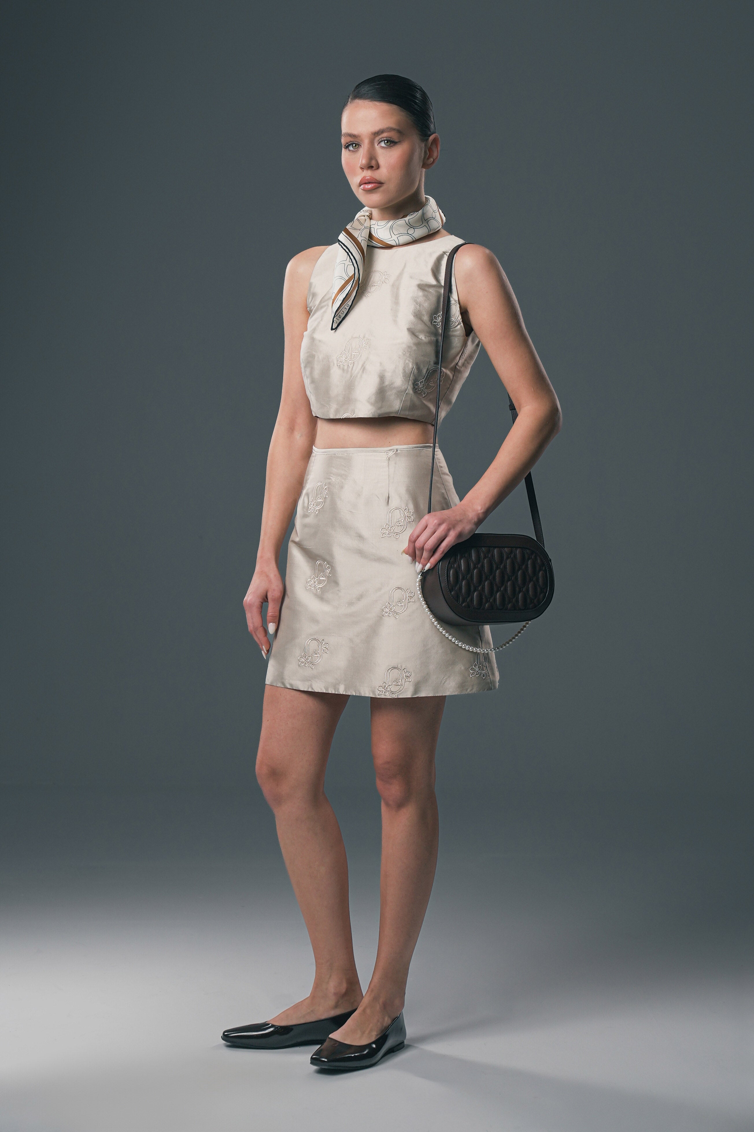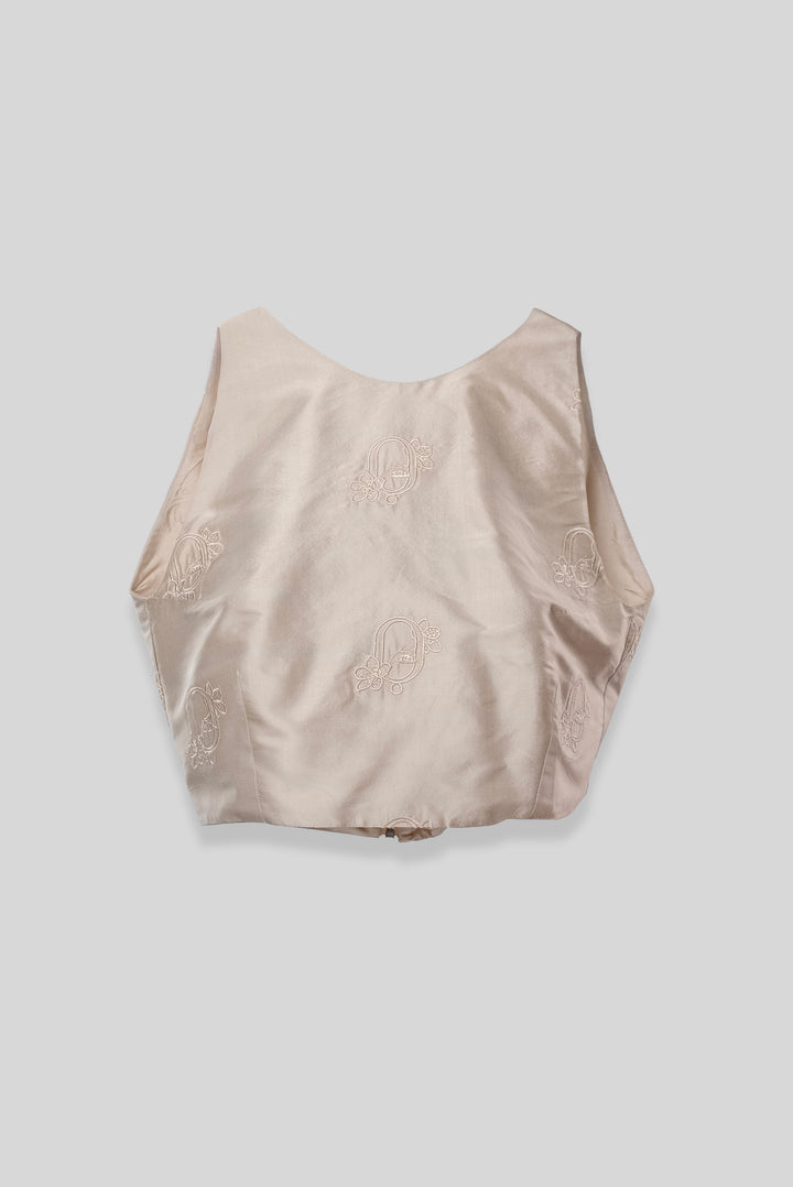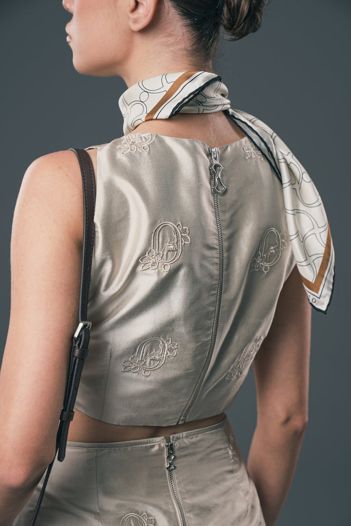 Crafted from fluid silk and elevated with refined embroidery details, this blouse embodies quiet sophistication. The soft sheen of silk enhances its graceful silhouette, making it a versatile piece from day to evening.