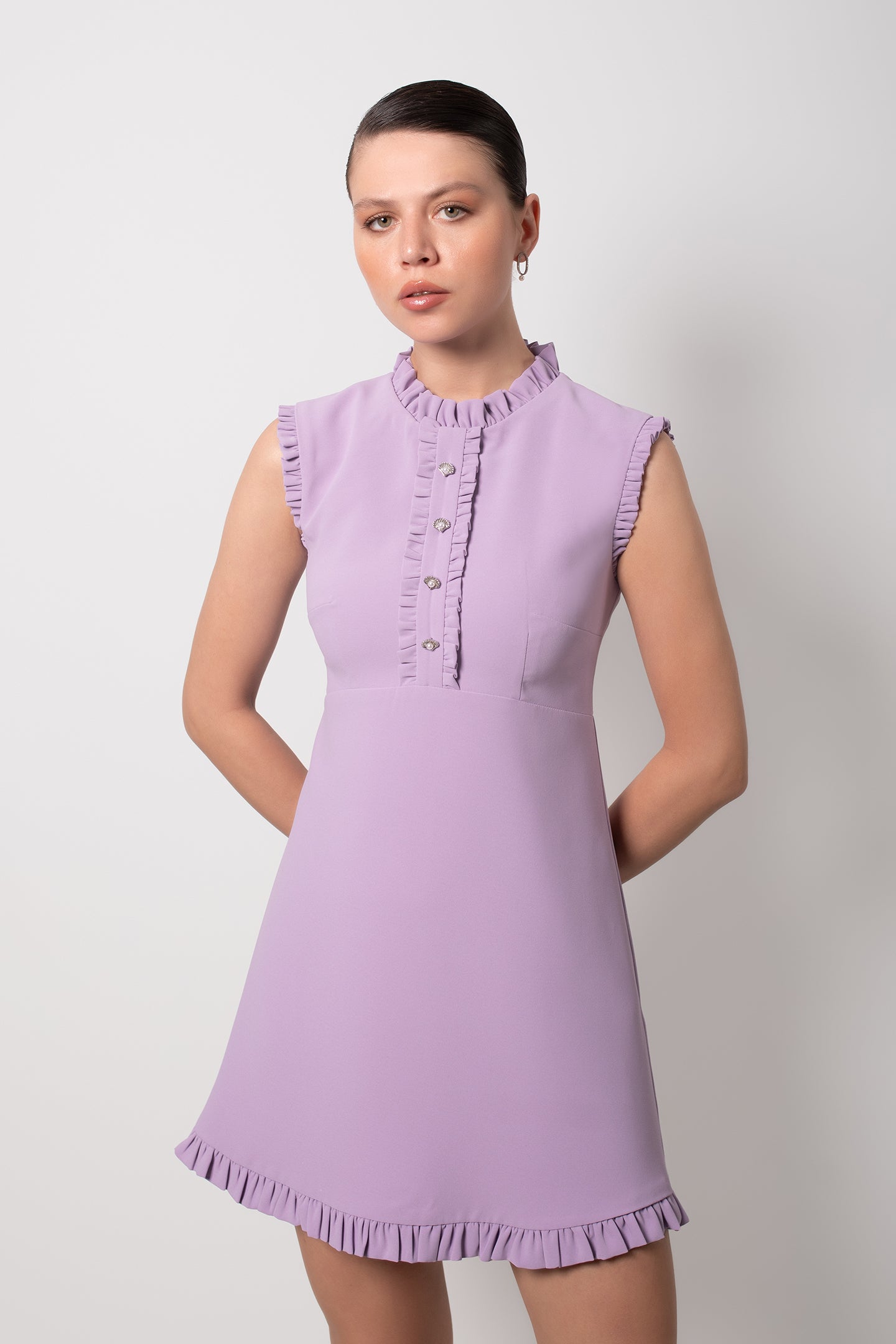 MANDARIN COLLAR RUFFLED LILAC DRESS