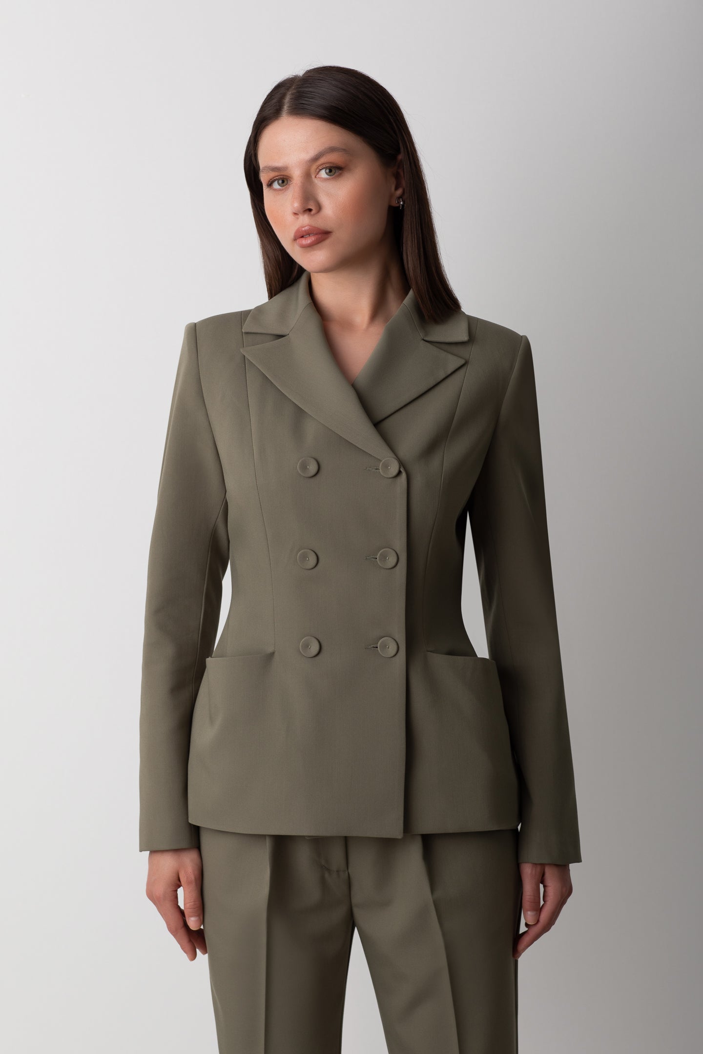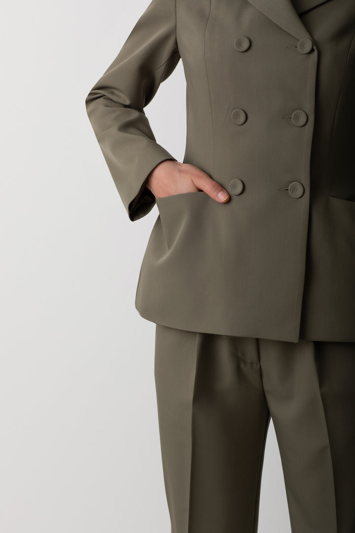 Jacket with a classic collar, double buttons and pocket details.