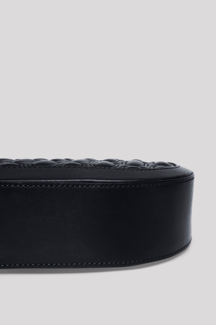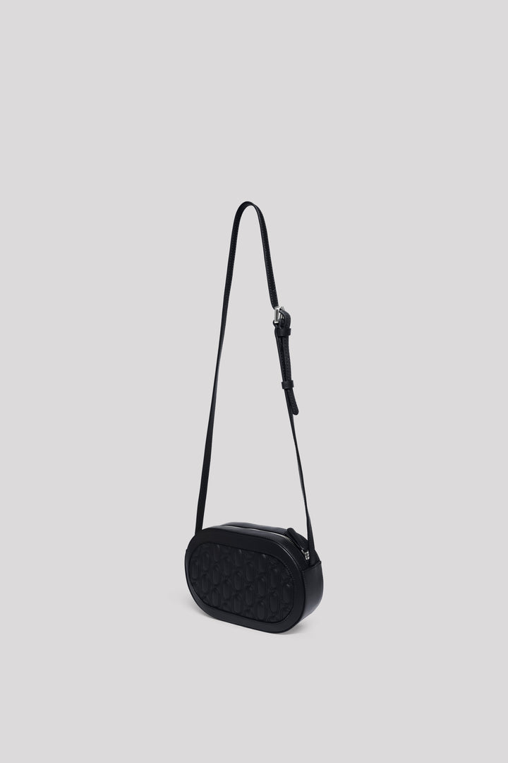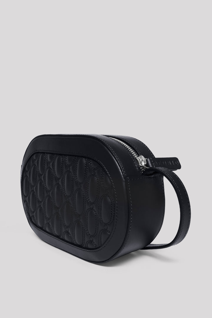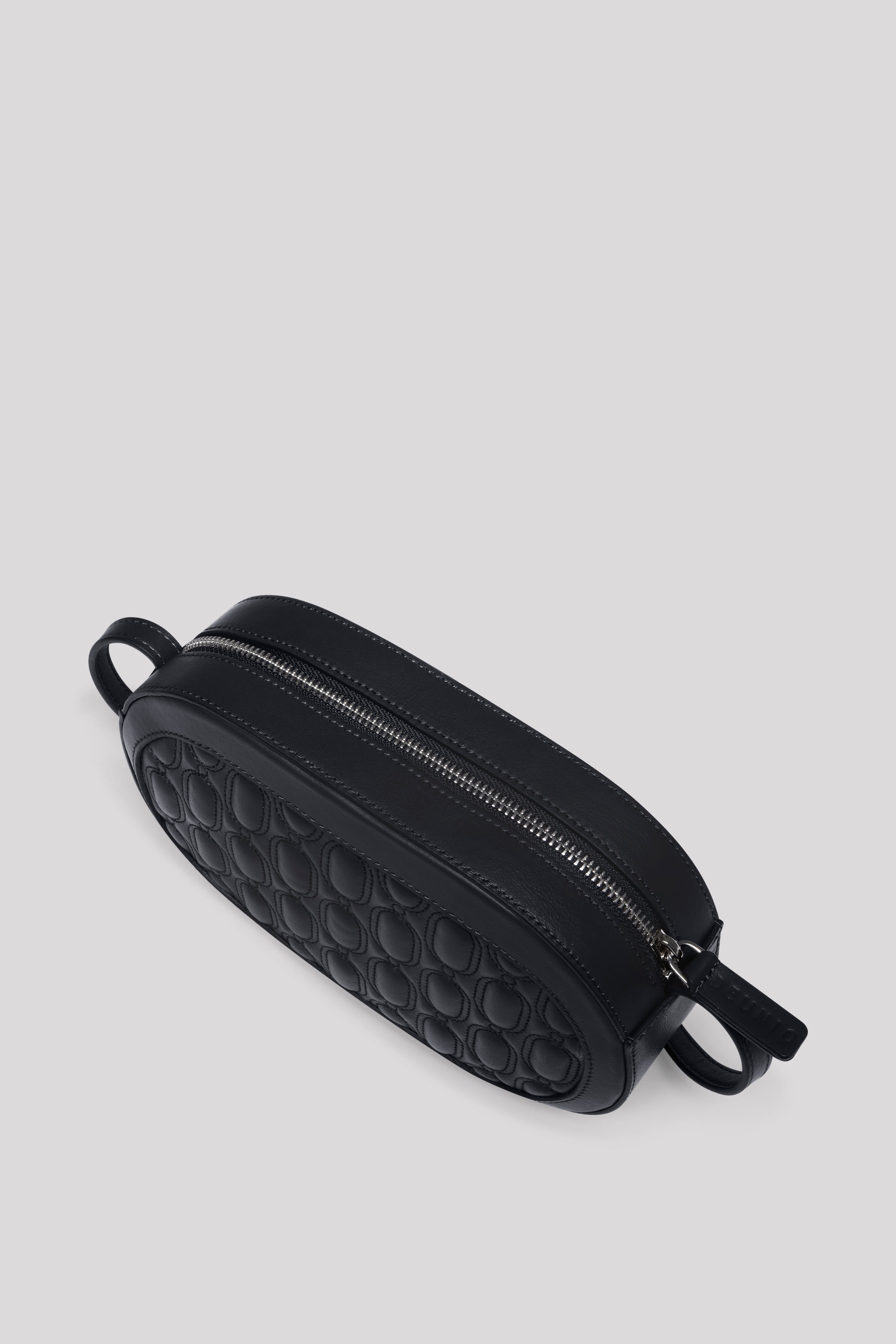 Crafted from 100% genuine calf leather in an elegant black tone, this bag reflects a clean and timeless aesthetic with its quilted embroidered logo on the front. Inside, it features two pockets — one zippered and one open — for practical organization. Designed with a top zipper closure for secure use. The strap is adjustable but not removable, allowing versatile styling