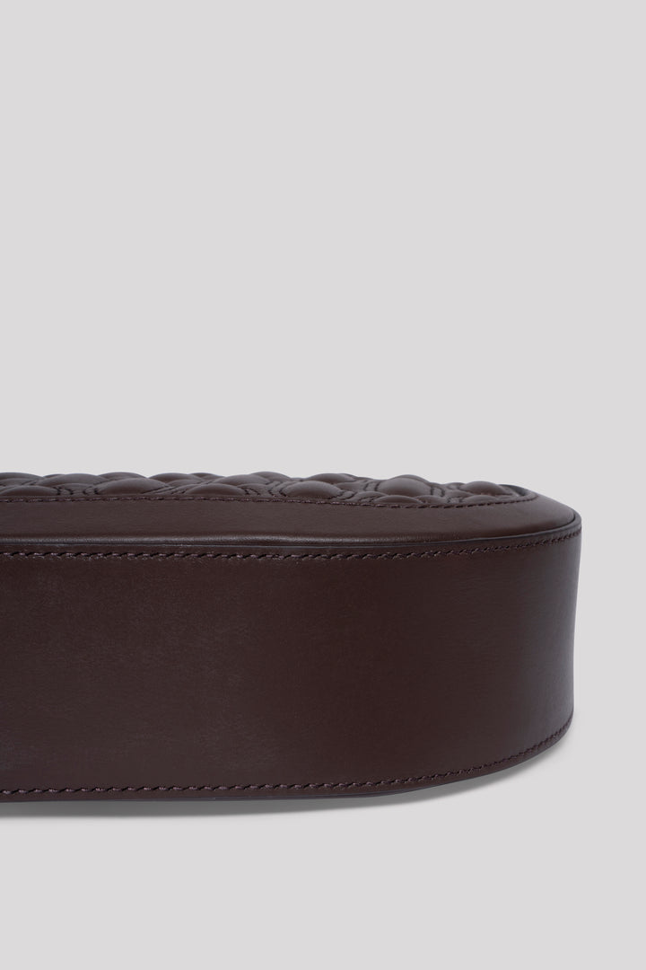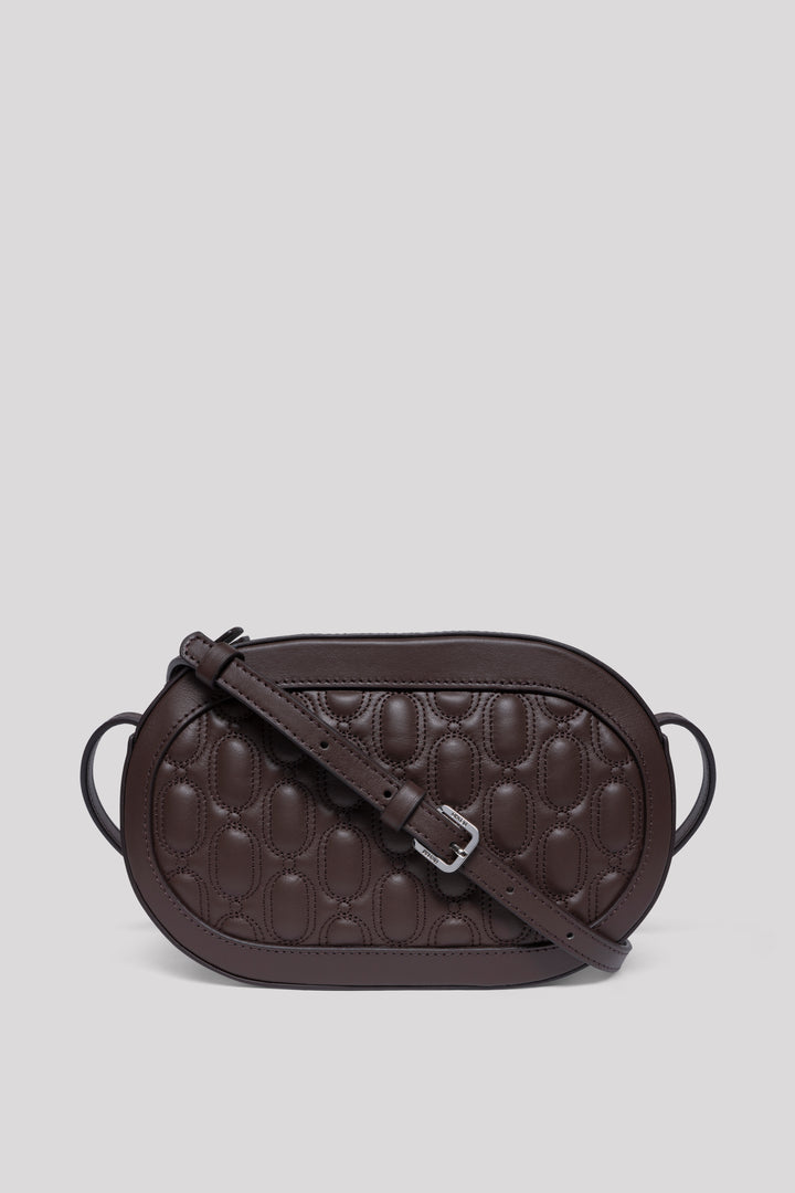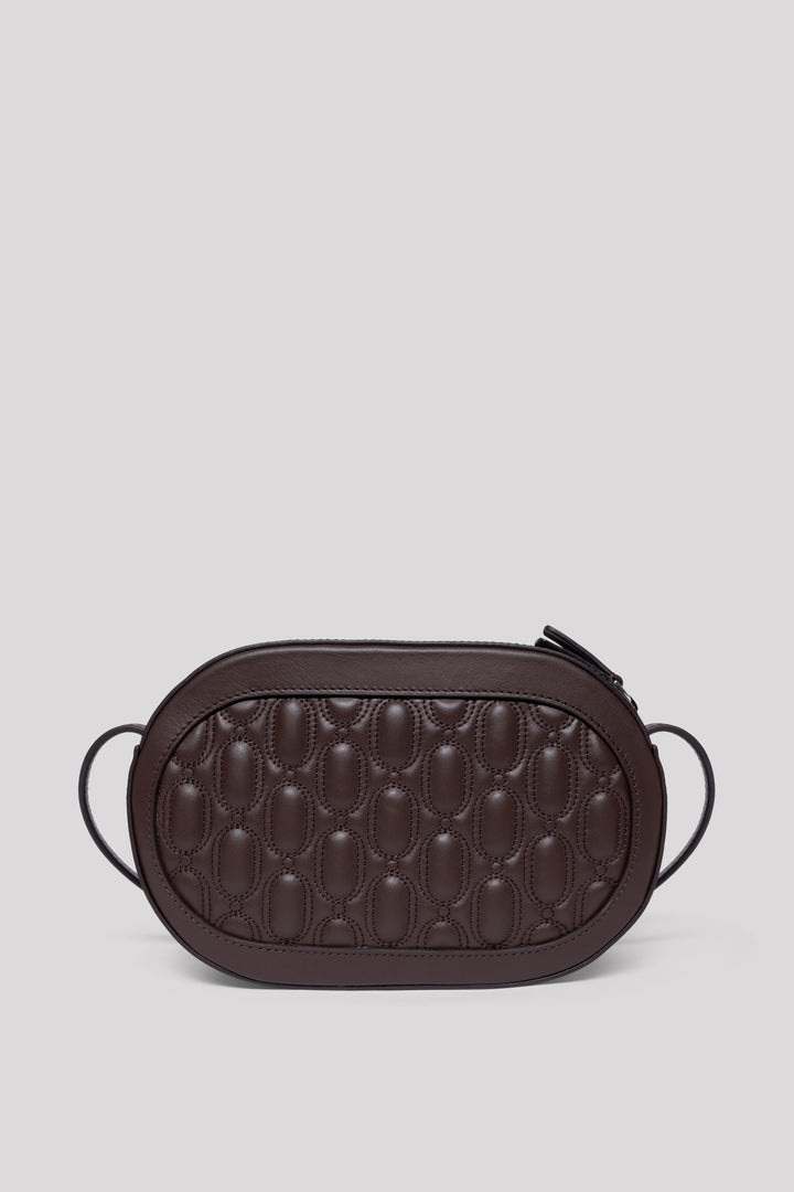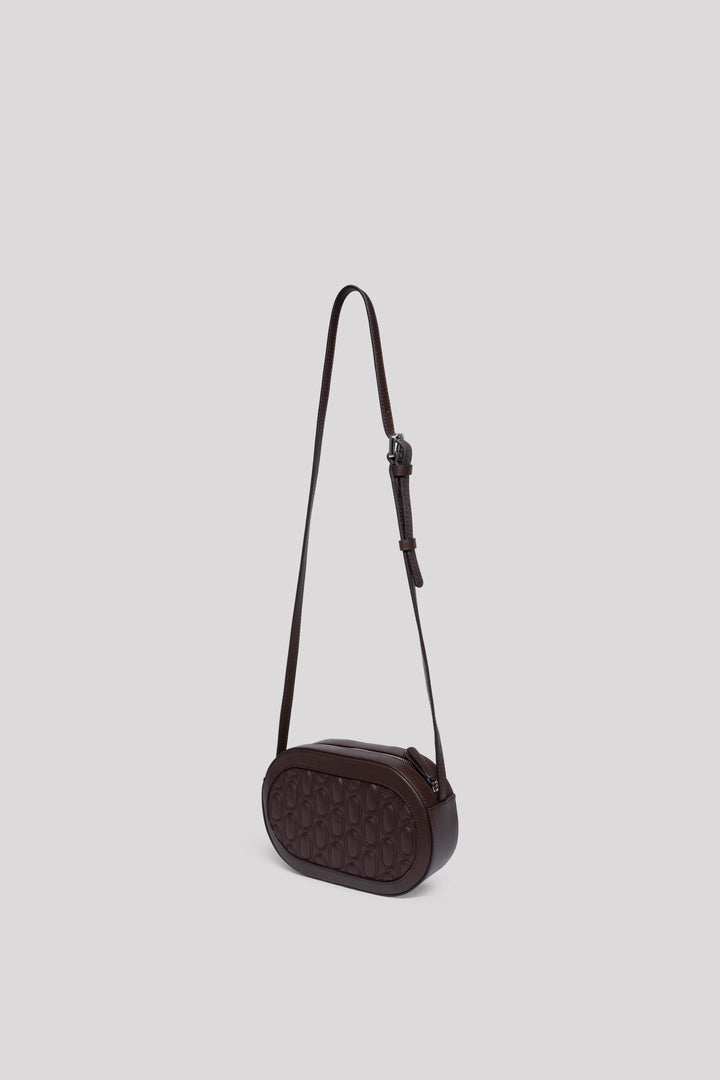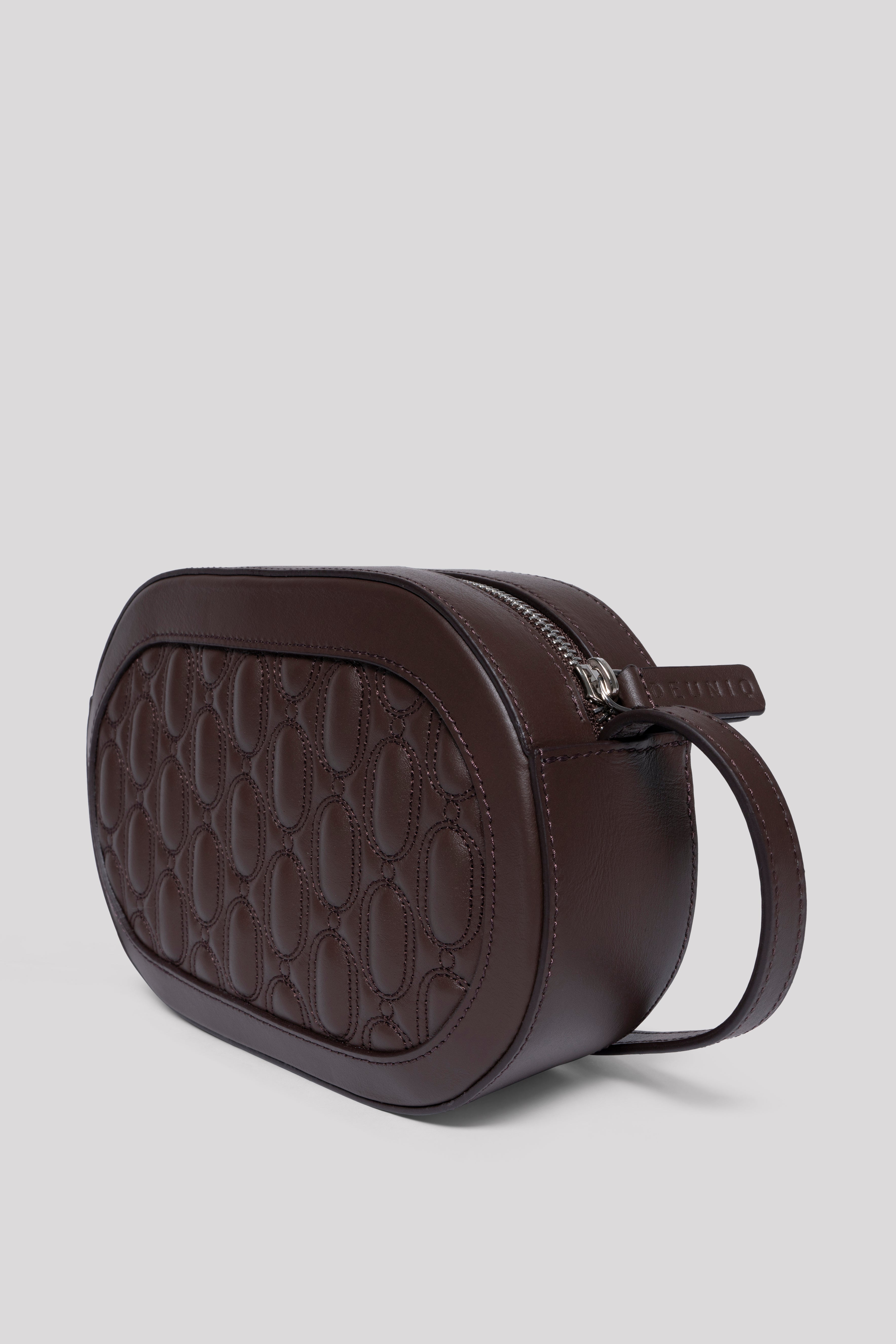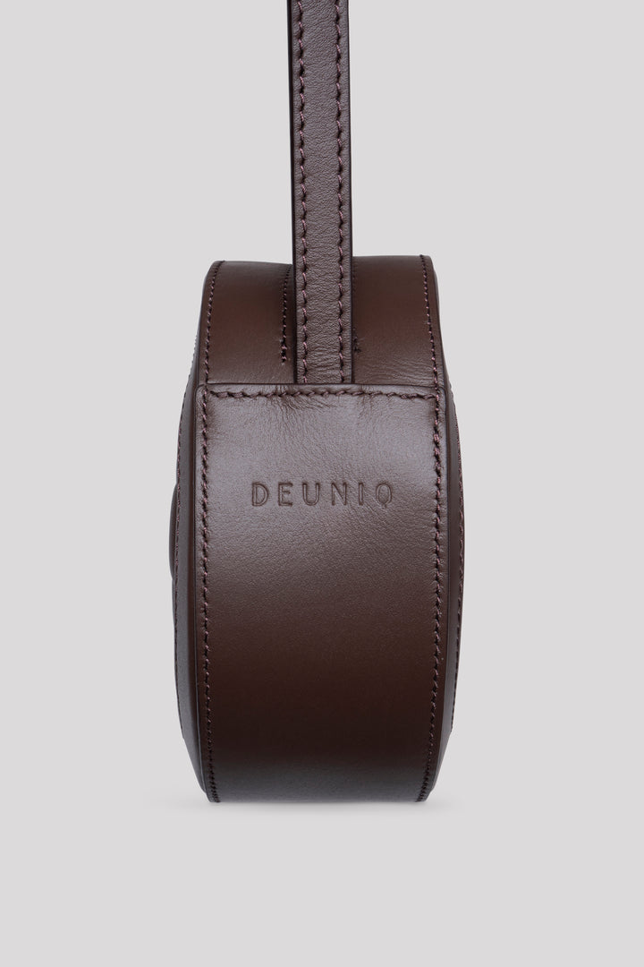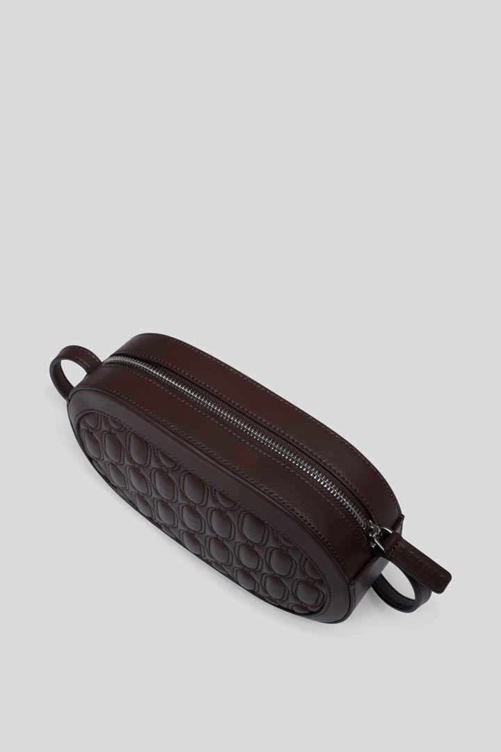 Crafted from 100% genuine calf leather in an elegant chocolate tone, this bag reflects a clean and timeless aesthetic with its quilted embroidered logo on the front. Inside, it features two pockets — one zippered and one open — for practical organization. Designed with a top zipper closure for secure use. The strap is adjustable but not removable, allowing versatile styling