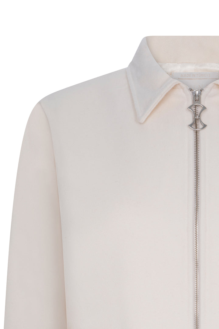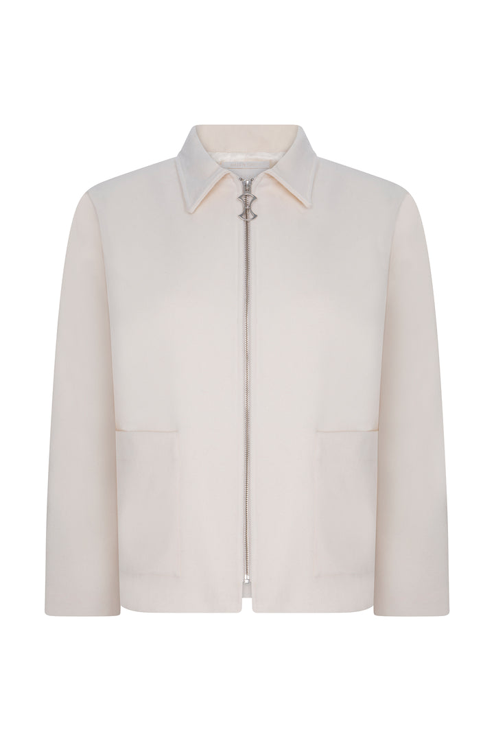 PEARL WOOL JACKET WITH SLOGAN