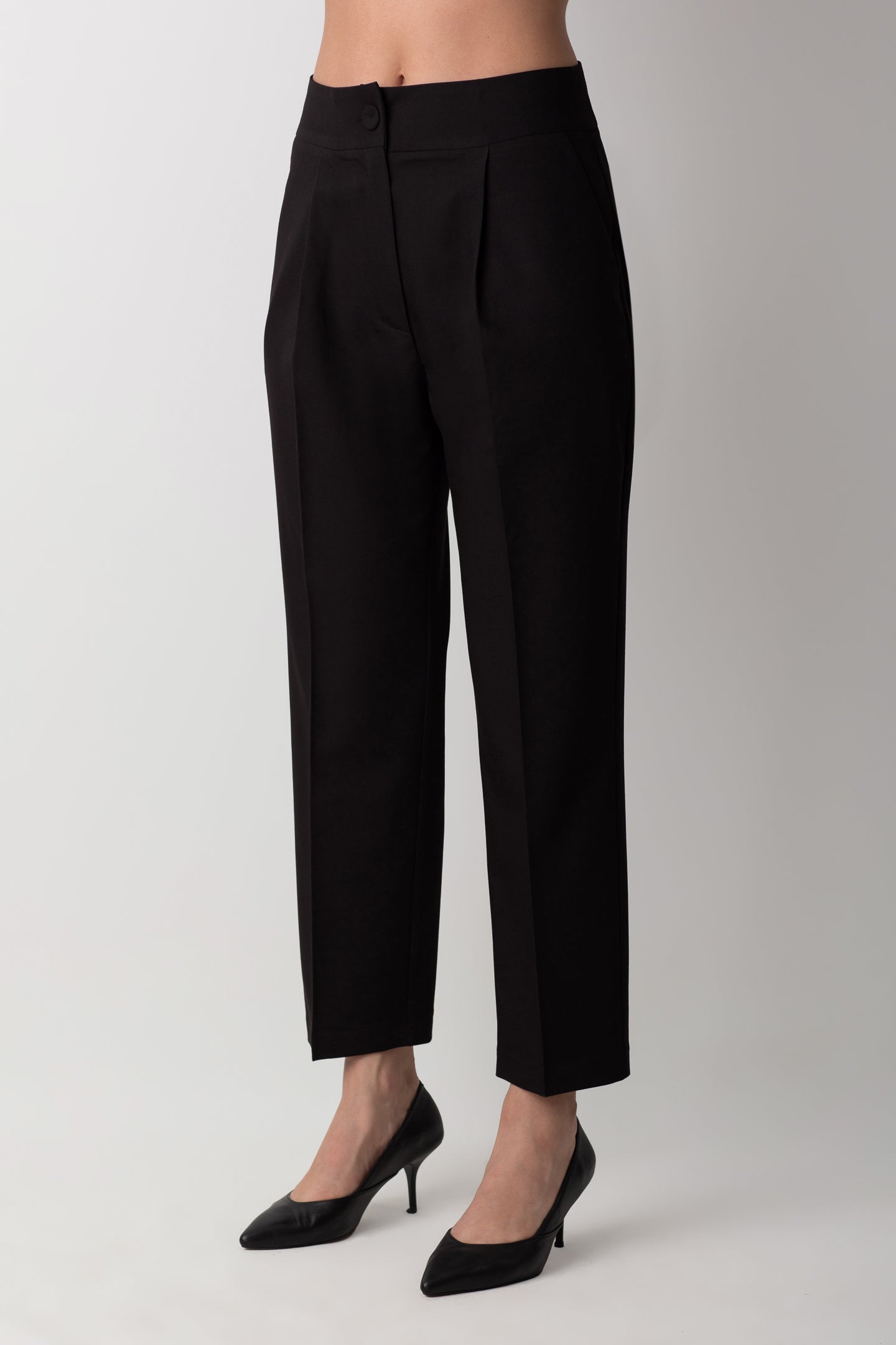 Mid-rise carrot trousers with crease detail.