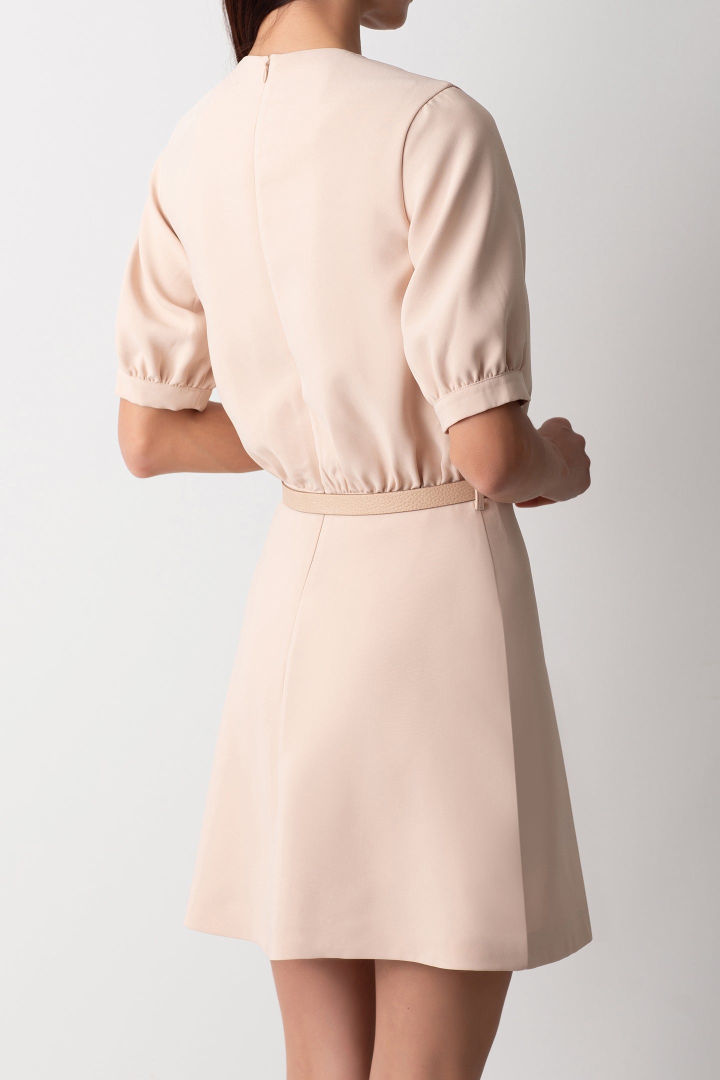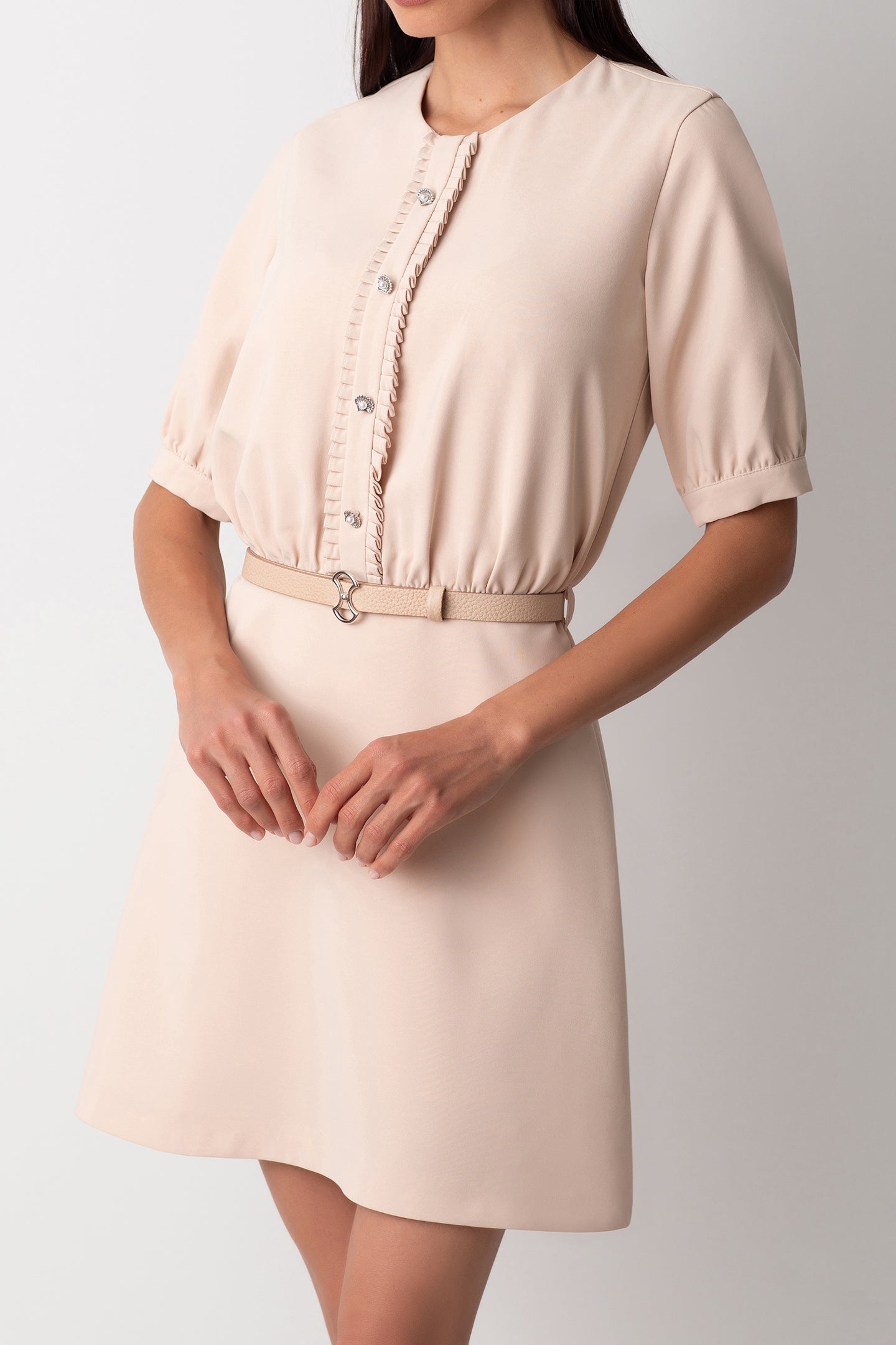 RUFFLE TRIMMED CREAM DRESS