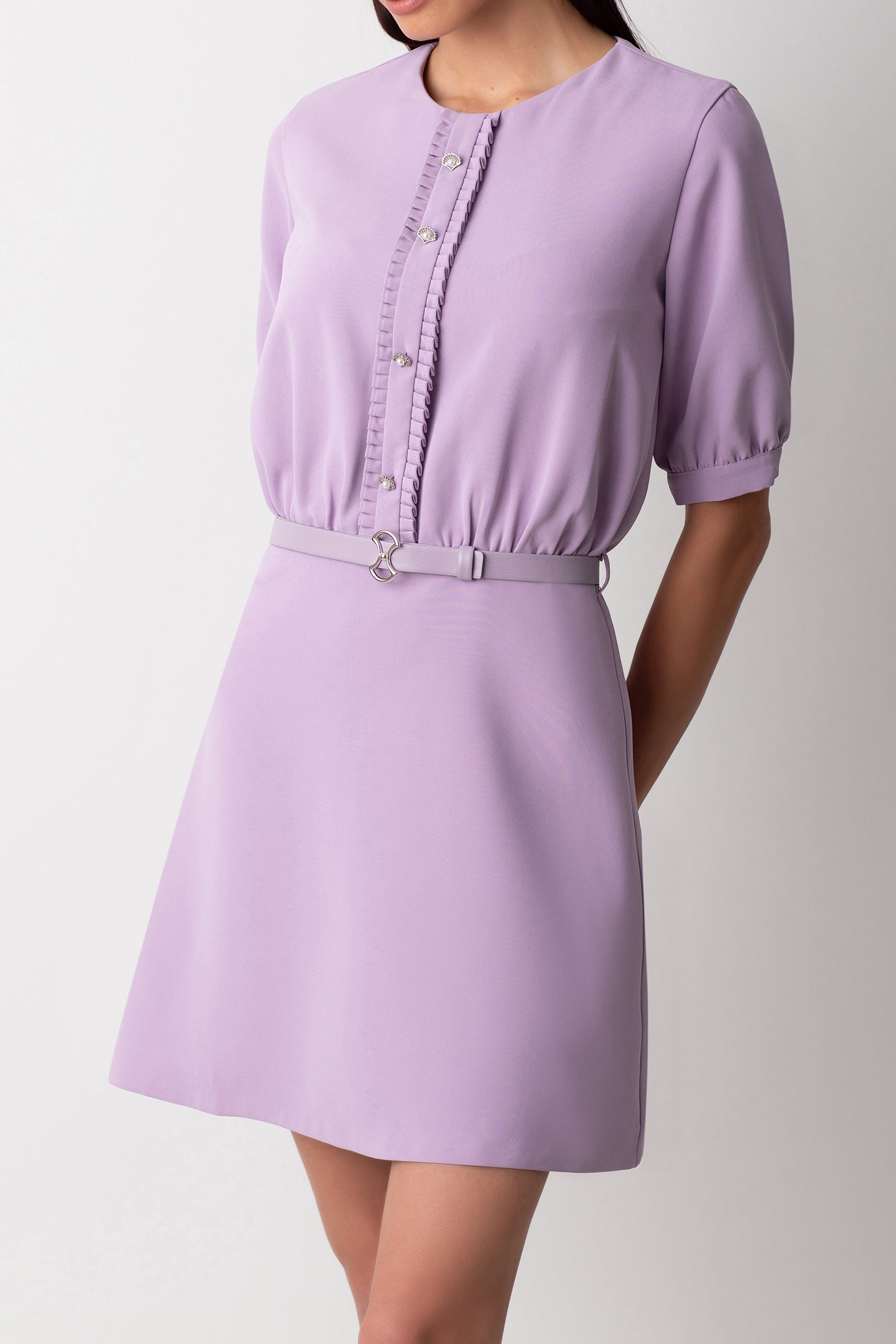 RUFFLE TRIMMED LILAC DRESS
