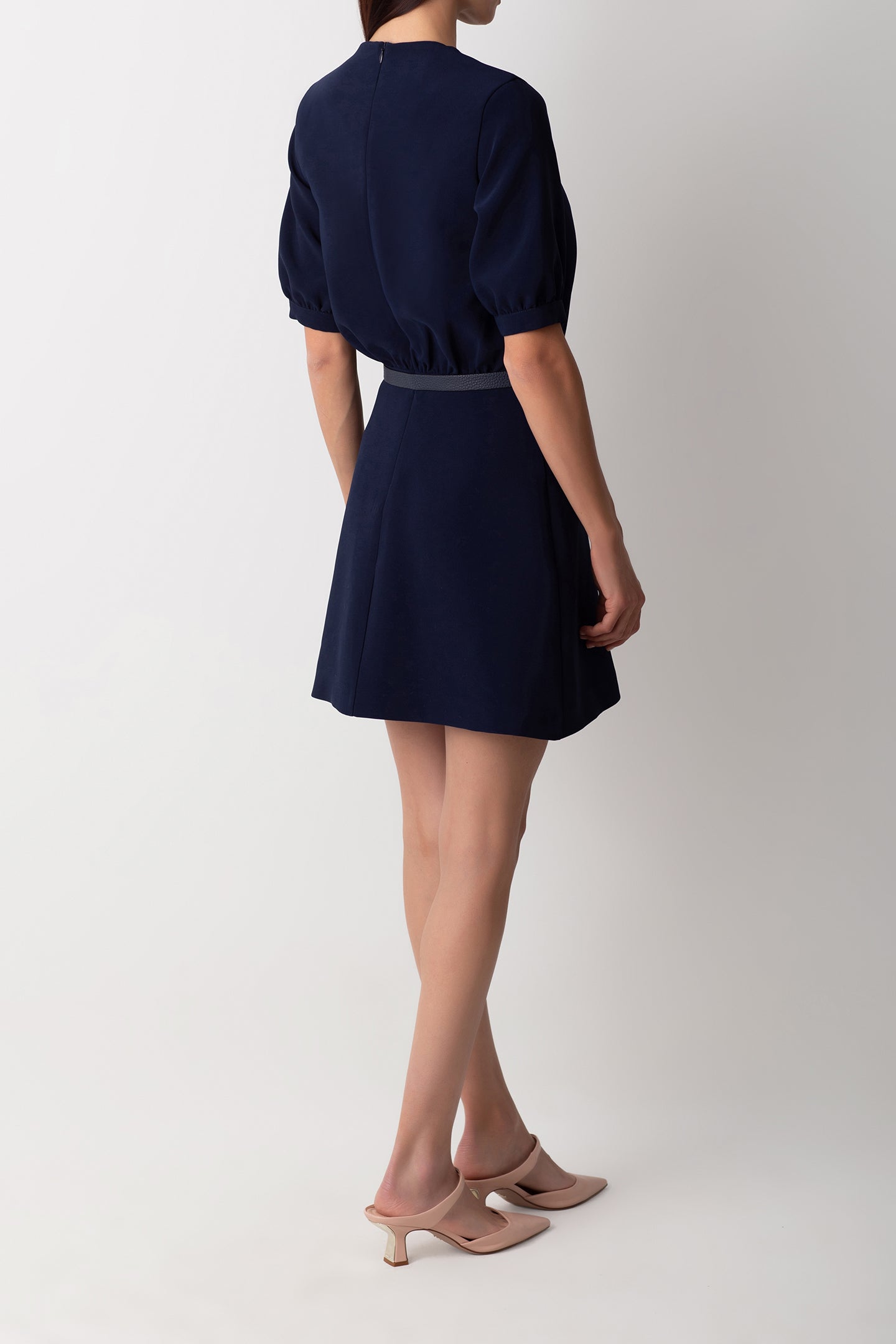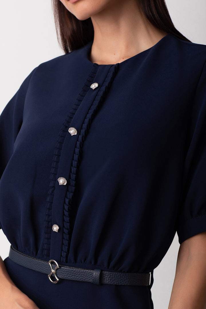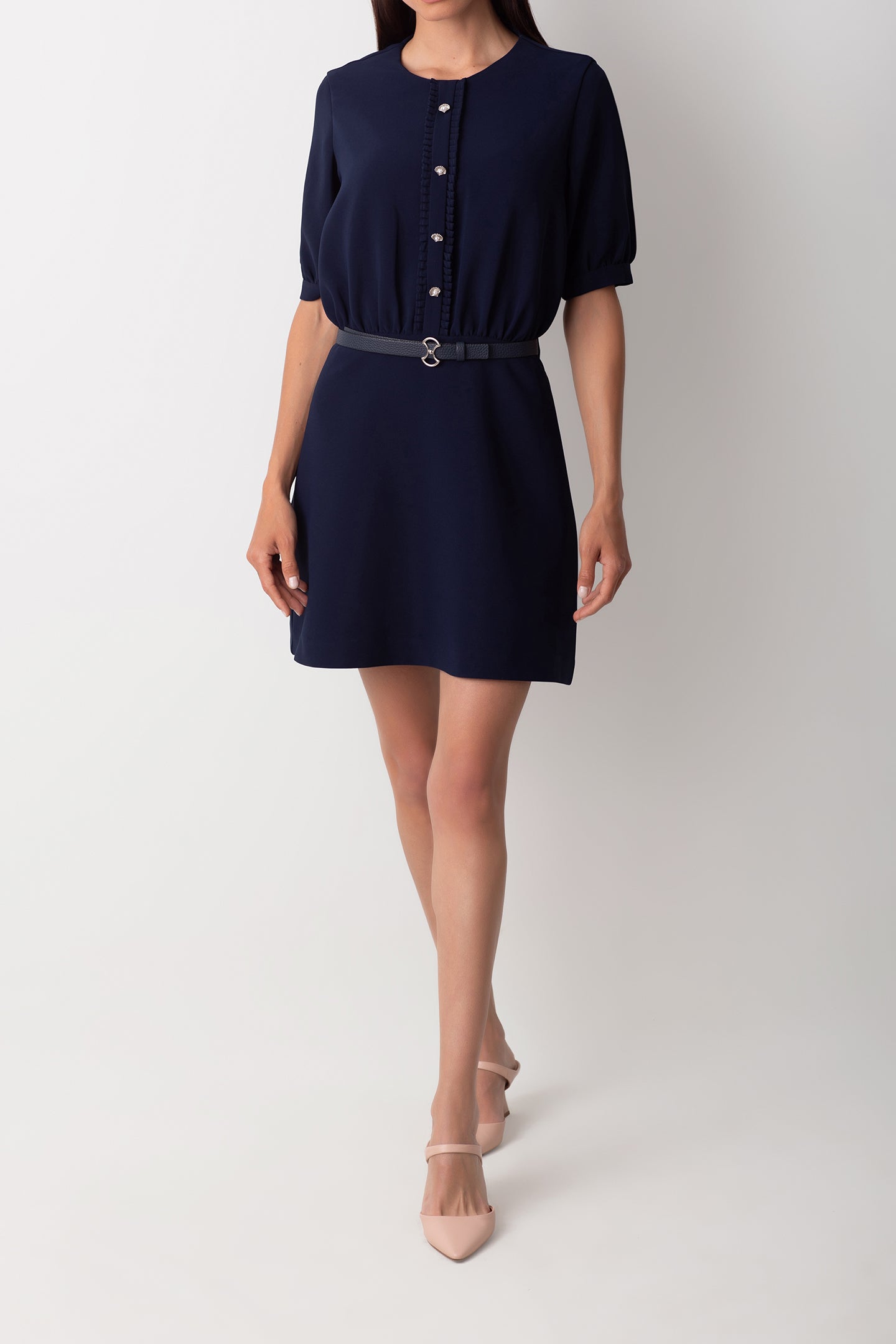 RUFFLE TRIMMED NAVY BLUE DRESS