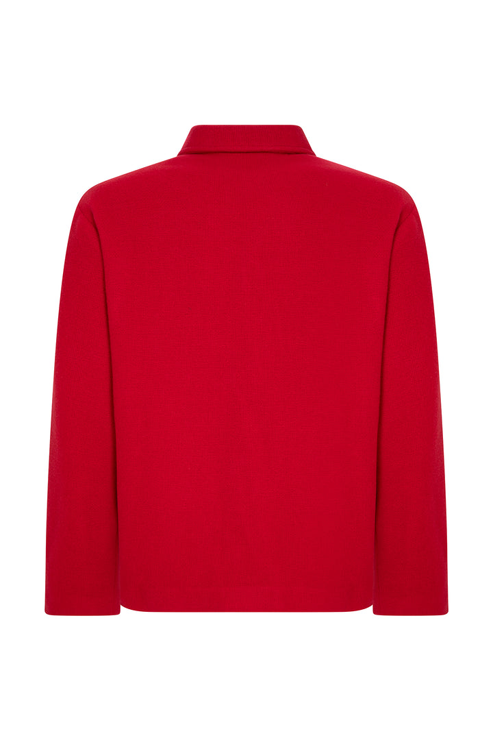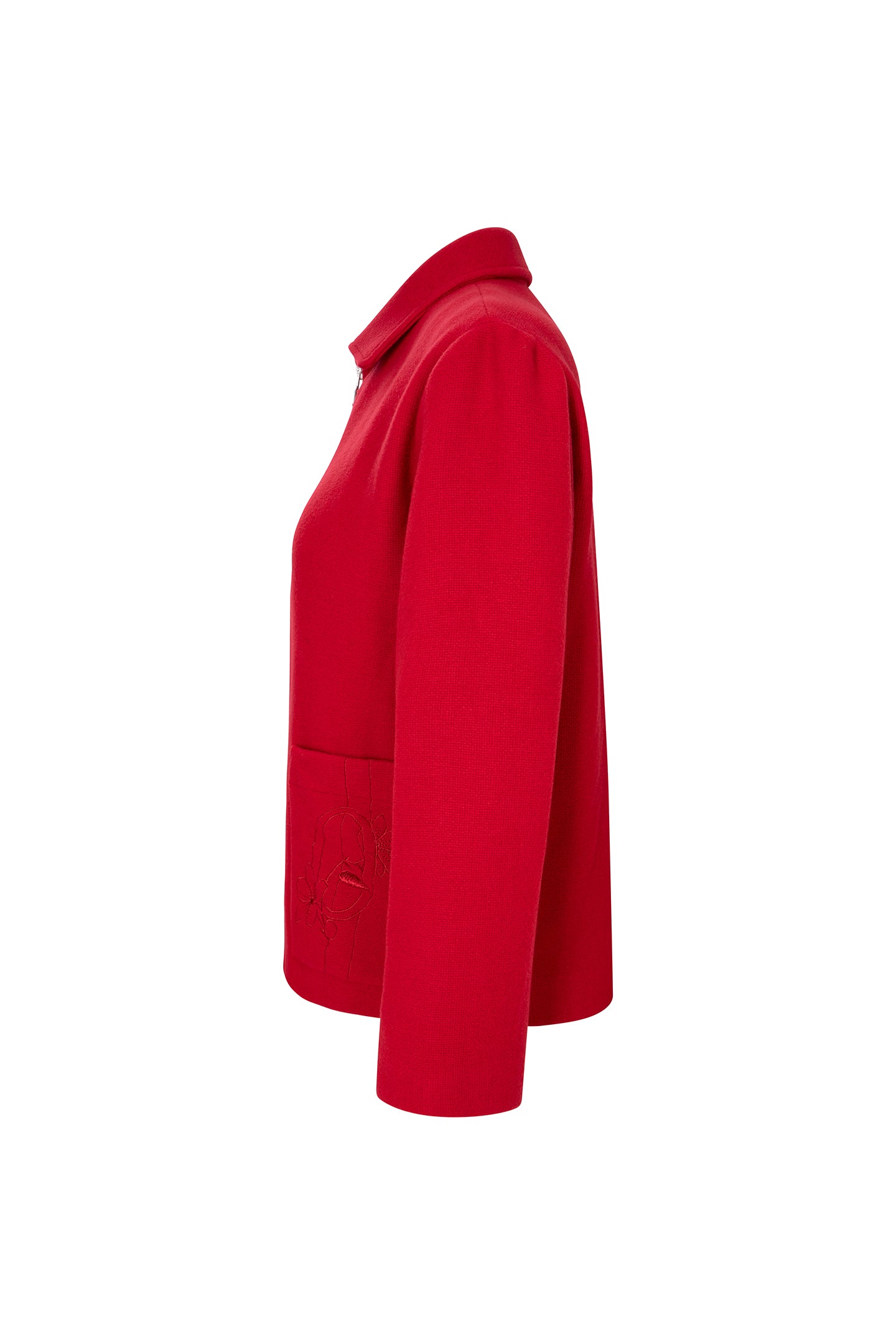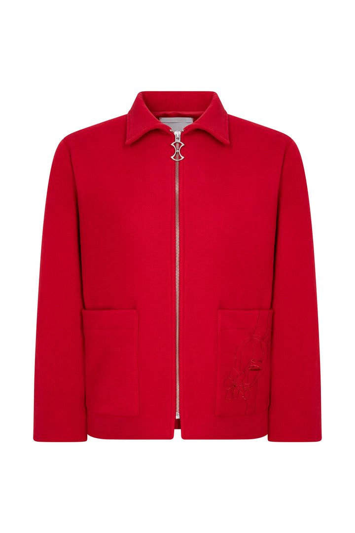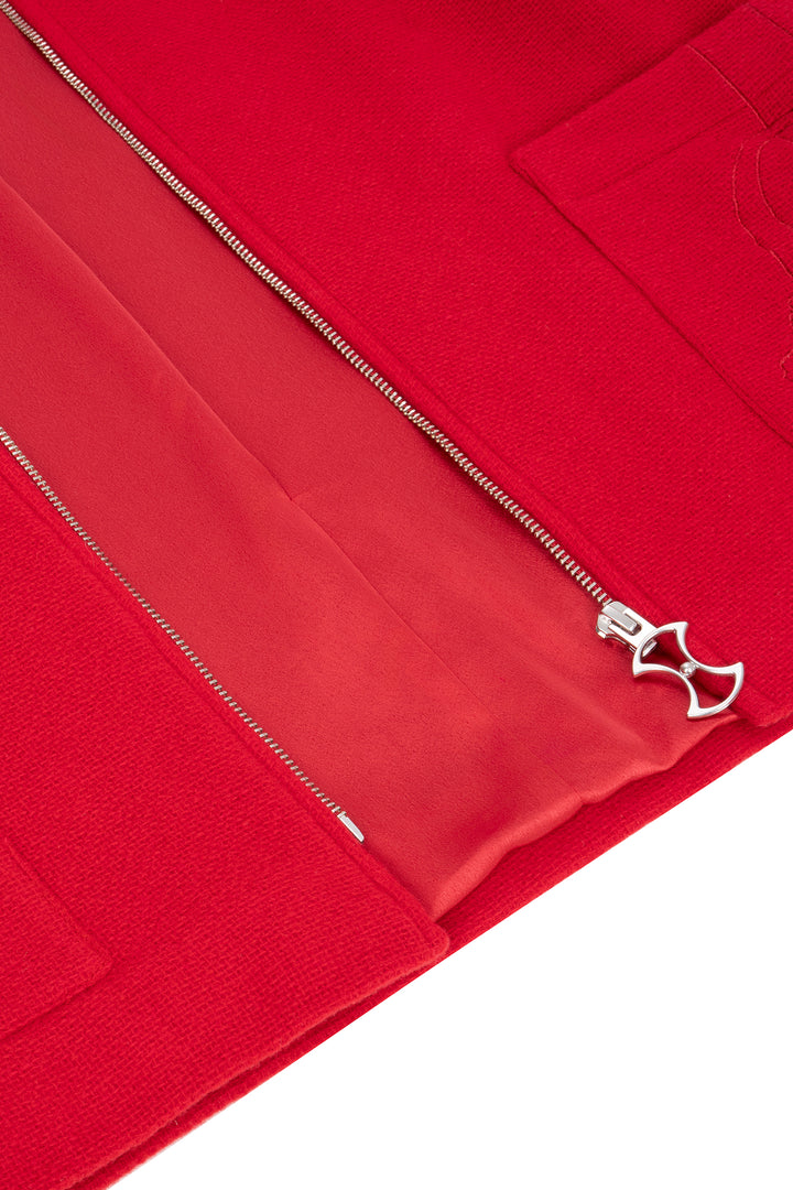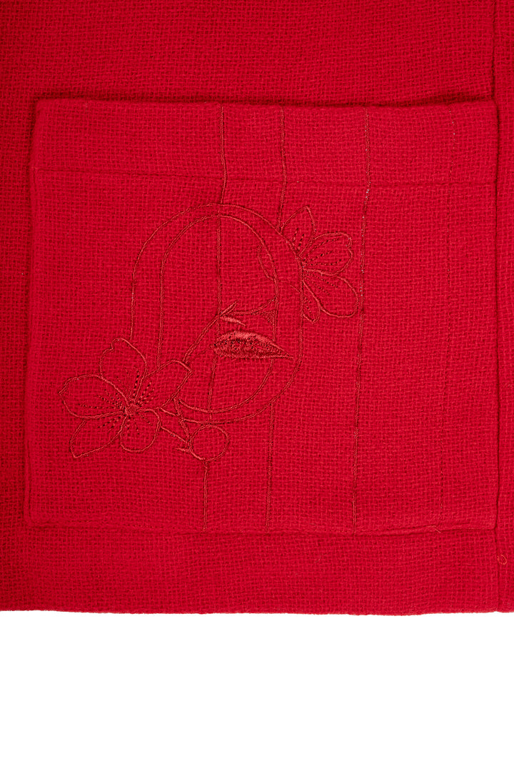SCARLET WOOL JACKET WITH PAREL EMBROIDERY