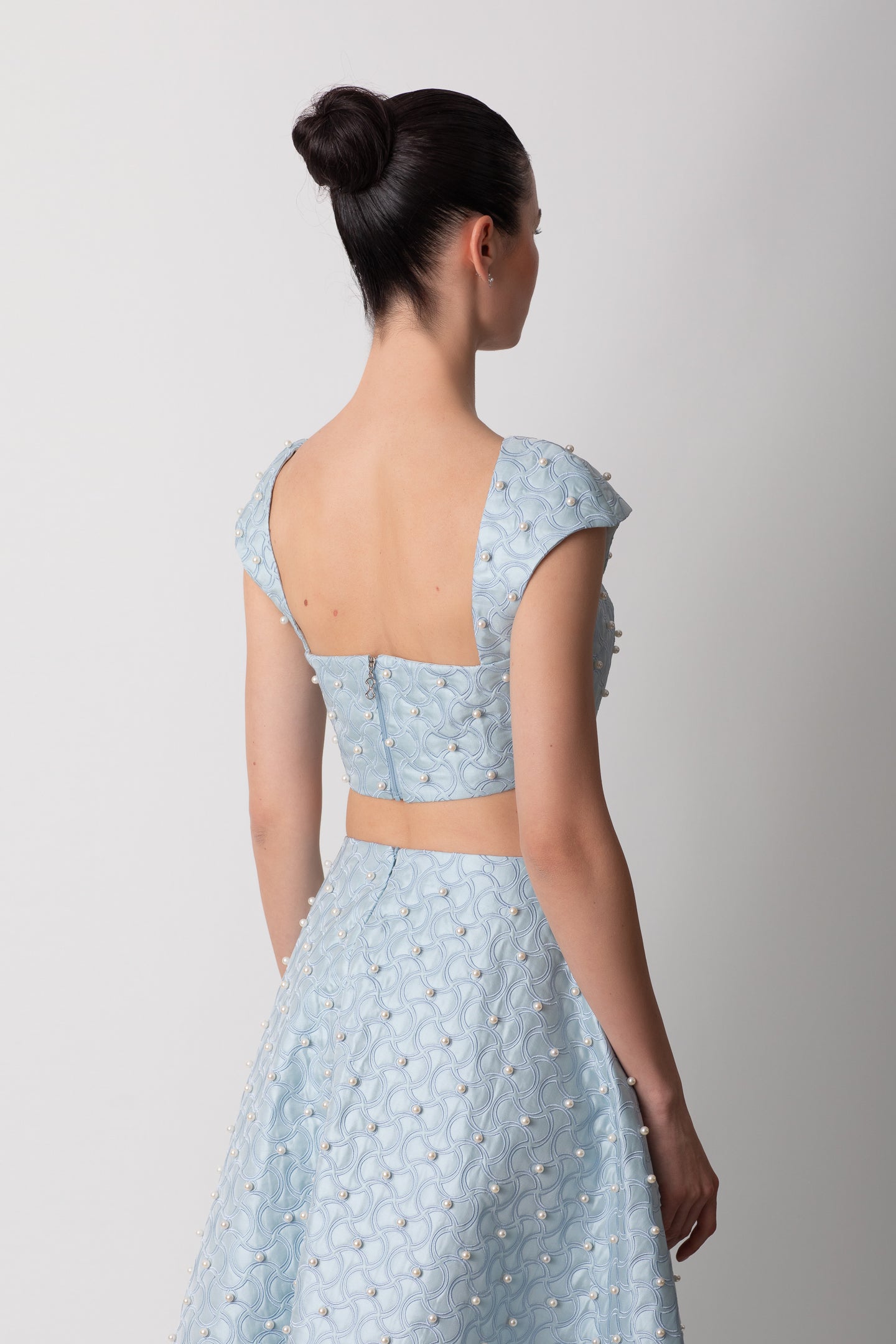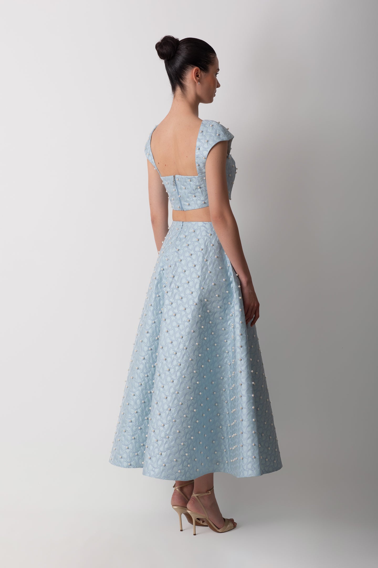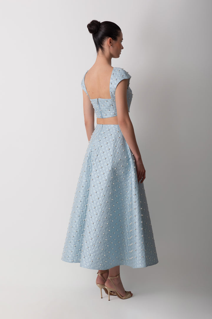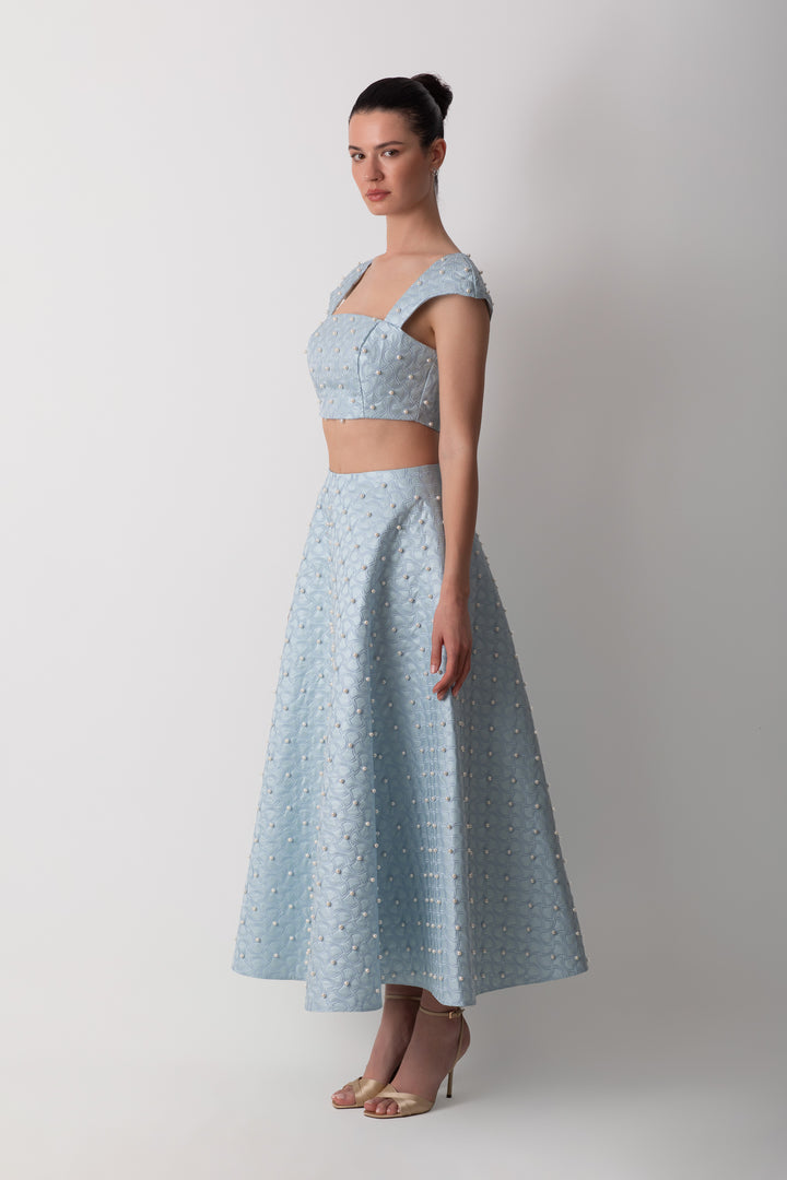SHANTUNG BLUE SKIRT WITH PEARLS