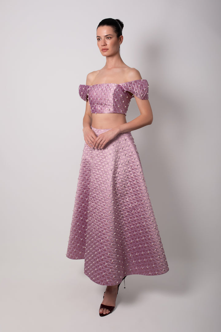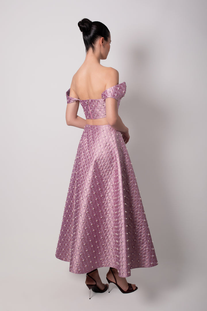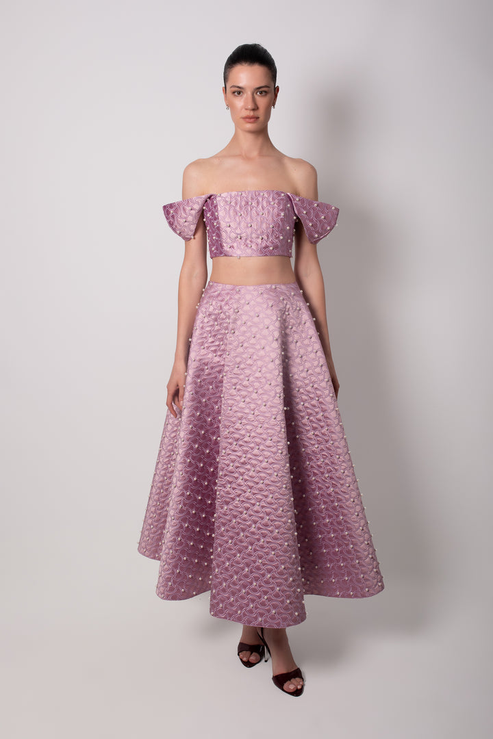 SHANTUNG PURPLE SKIRT WITH PEARLS