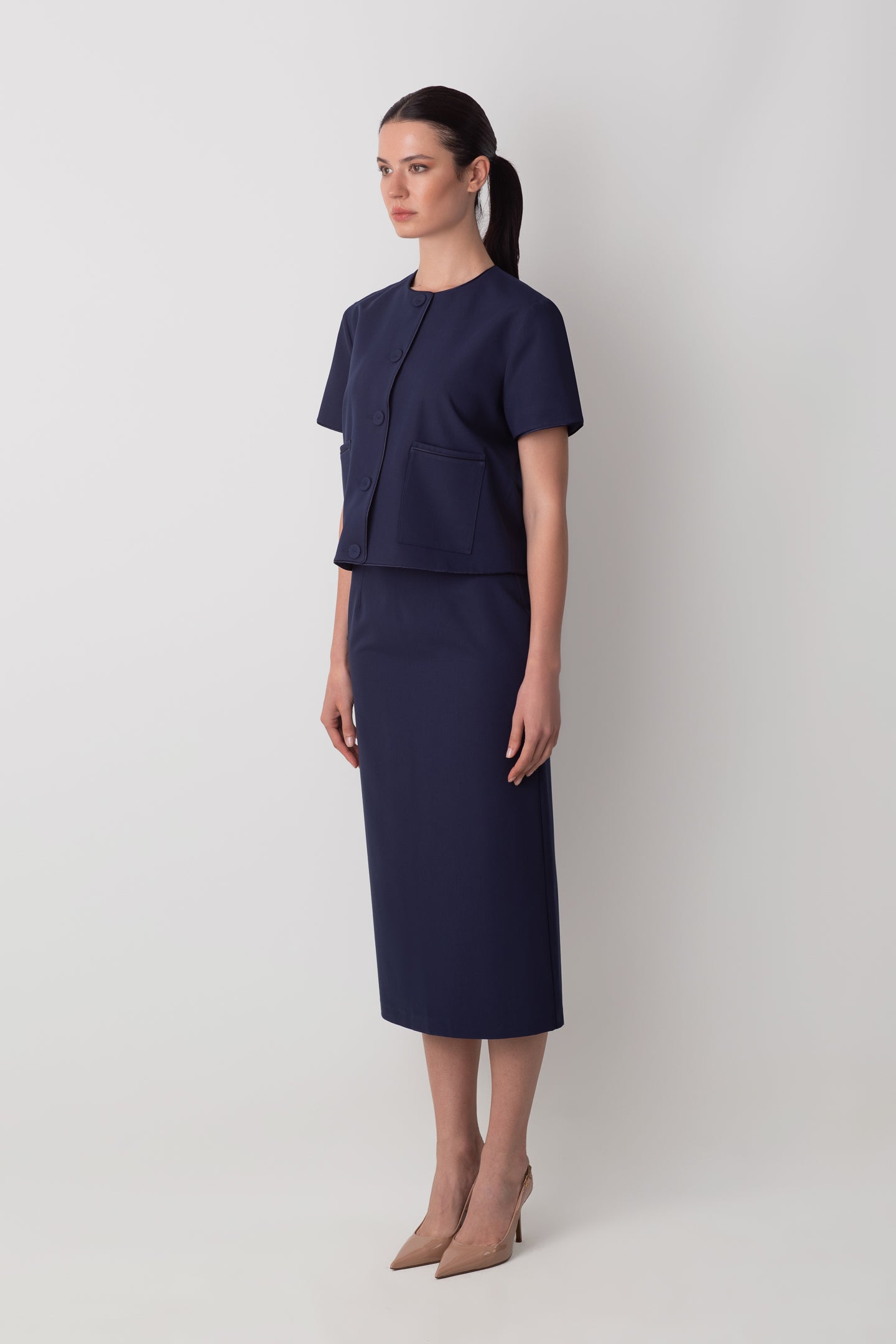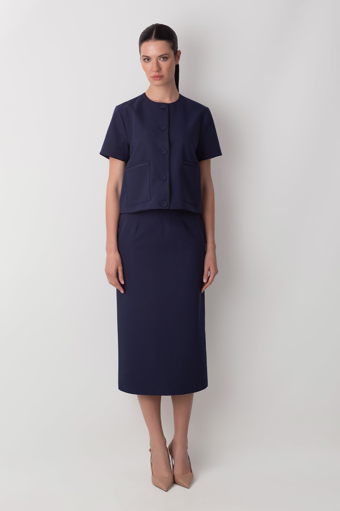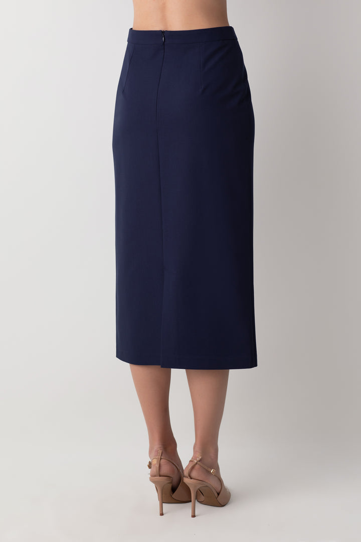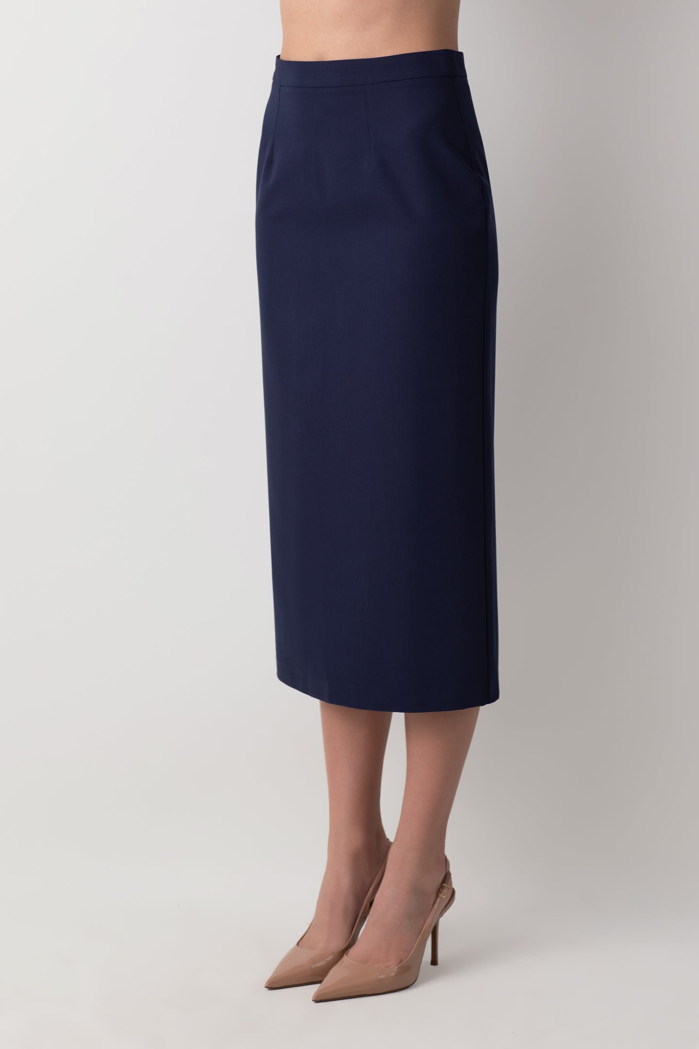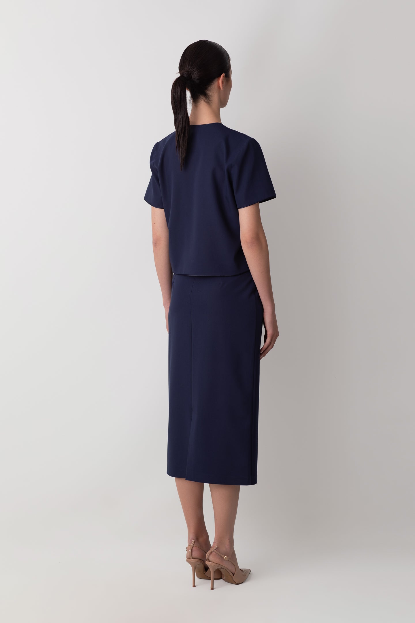 SLIT DETAILED NAVY BLUE MIDI TUBE SKIRT