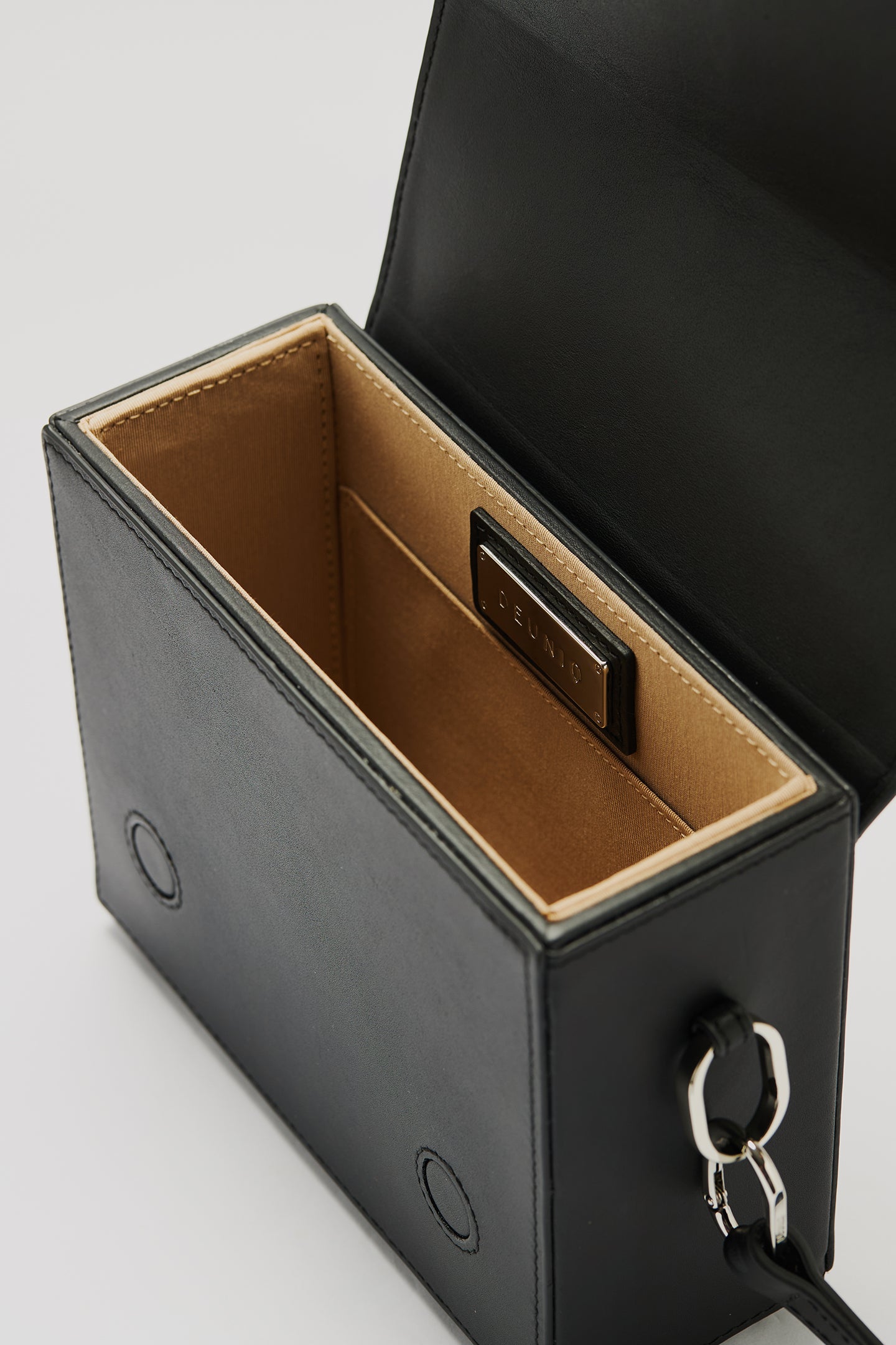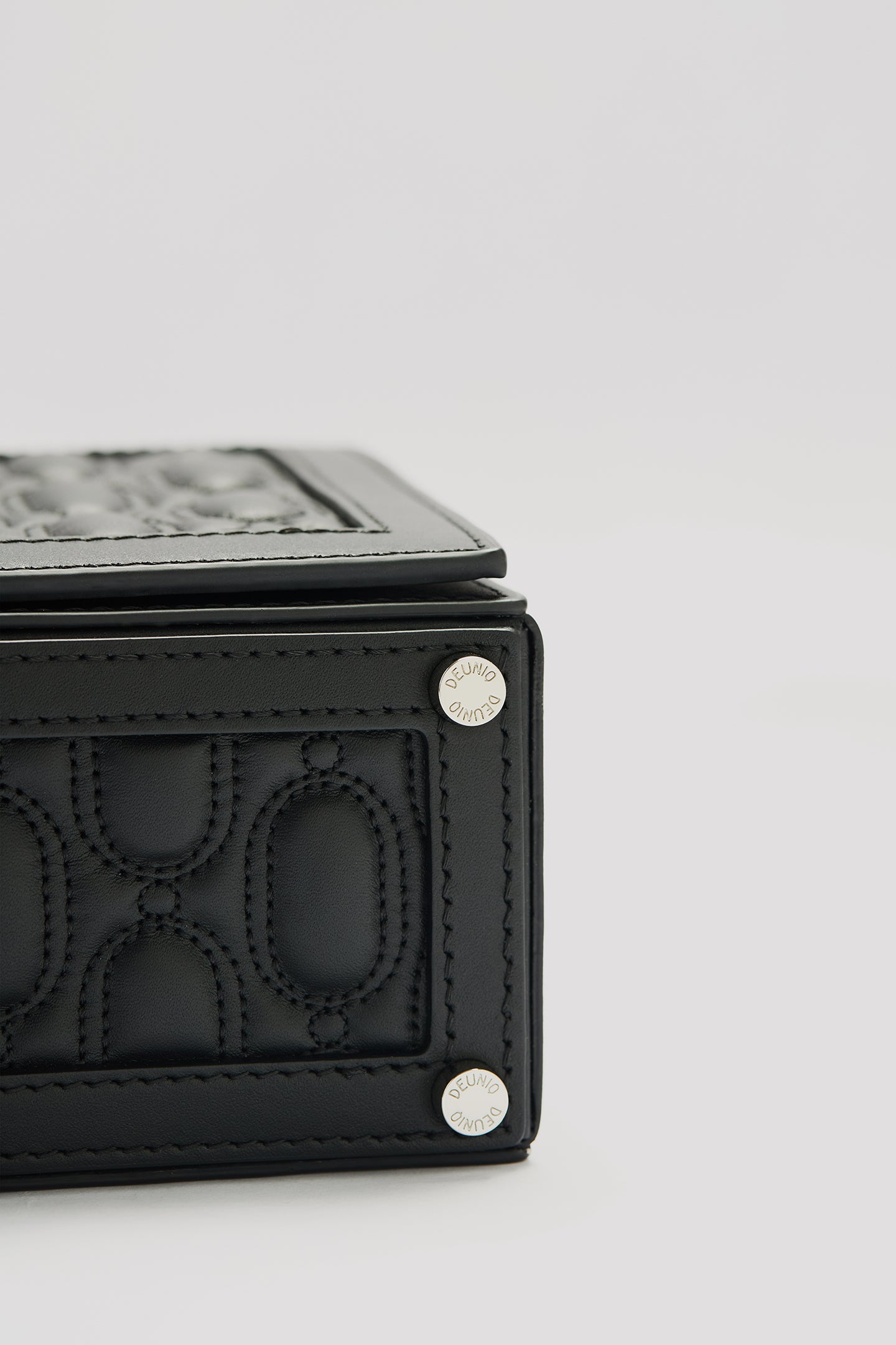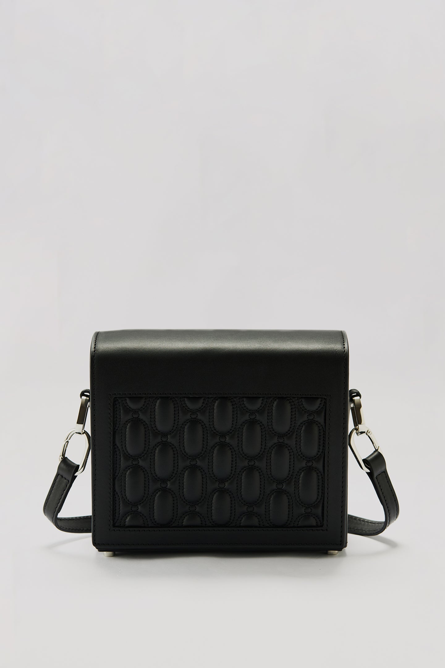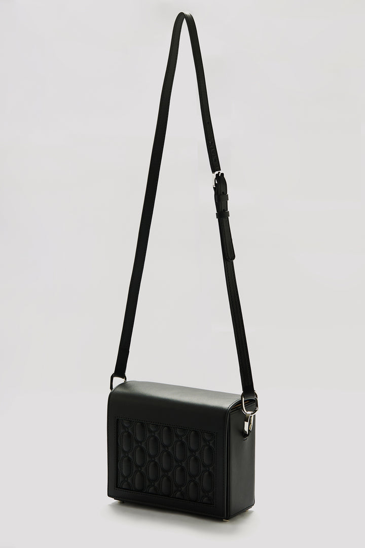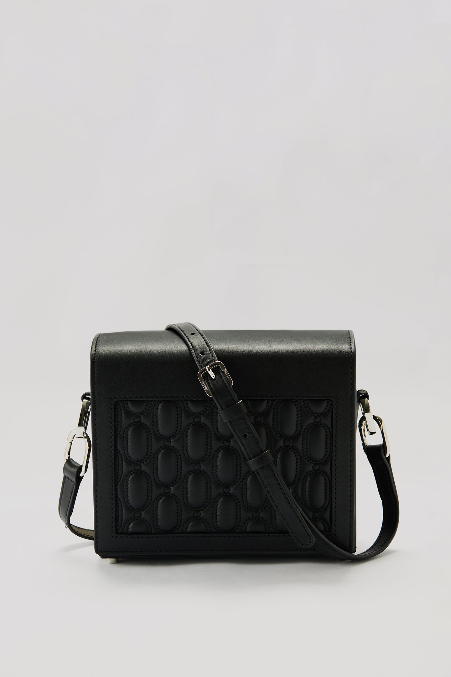 Crafted from 100% genuine calf leather in a black tone, this bag enhances the brand’s timeless and minimal aesthetic with its quilted logo detail on the front. The interior features two pockets that help keep your daily essentials organized, while the metal logo detail adds a sophisticated touch to the design. Thanks to its adjustable and detachable shoulder strap, it easily adapts to different styling options.