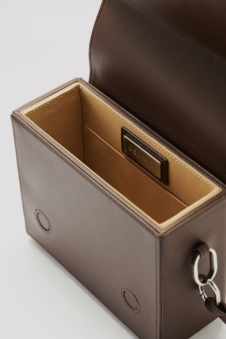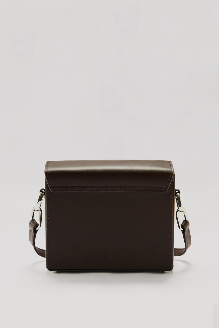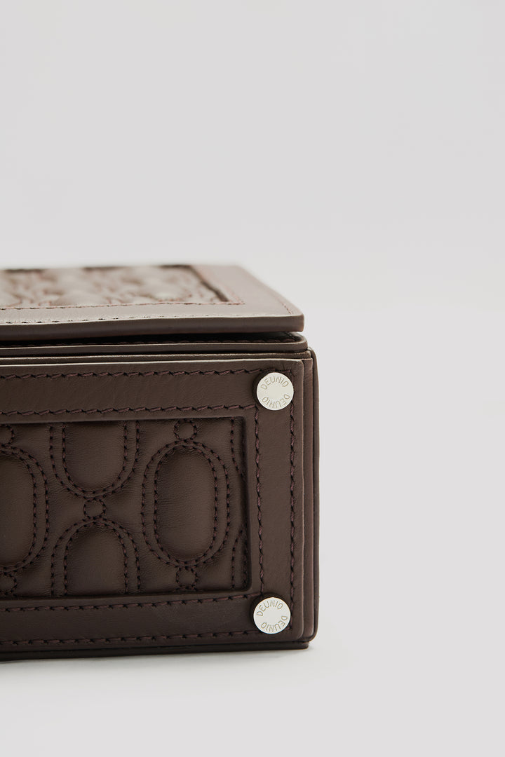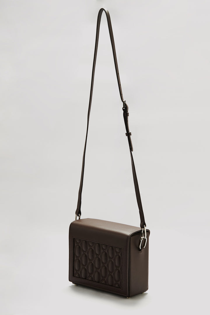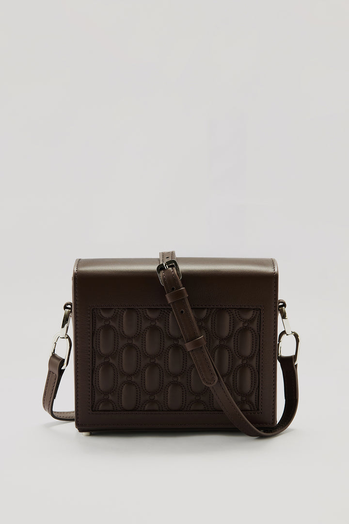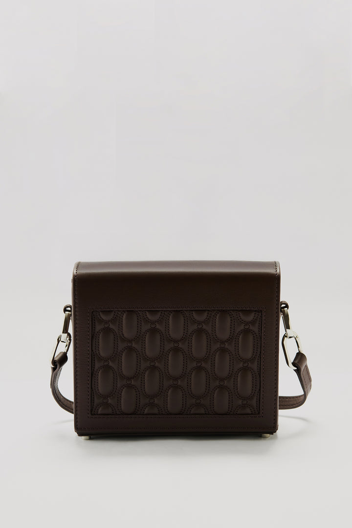 Crafted from 100% genuine calf leather in a chocolate tone, this bag enhances the brand’s timeless and minimal aesthetic with its quilted logo detail on the front. The interior features two pockets that help keep your daily essentials organized, while the metal logo detail adds a sophisticated touch to the design. Thanks to its adjustable and detachable shoulder strap, it easily adapts to different styling options.